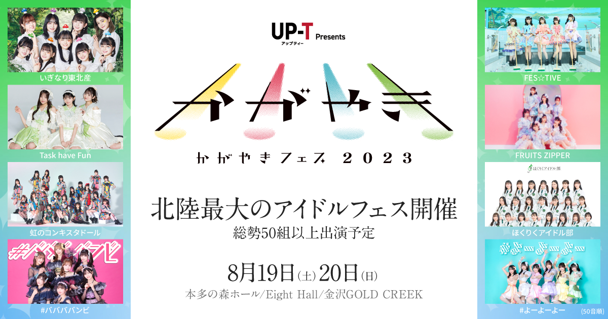 2023年8月19日(土)・20日(日)の2日間にわたり「本多の森ホール」をメイン会場とし、ライブハウスを含む3会場にて開催する『UP-T presents かがやきフェス 2023』の第一弾出演アーティストが発表された。