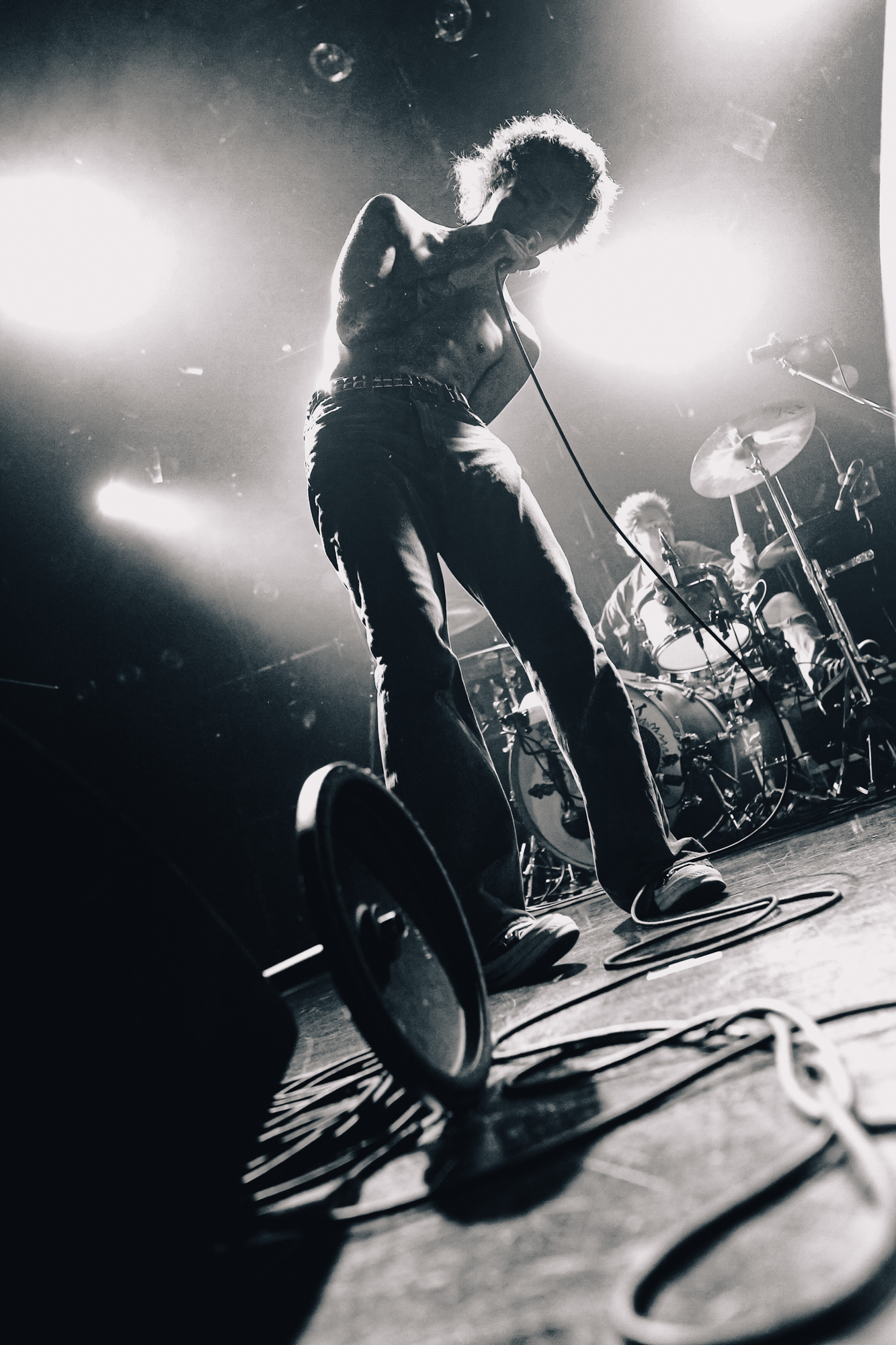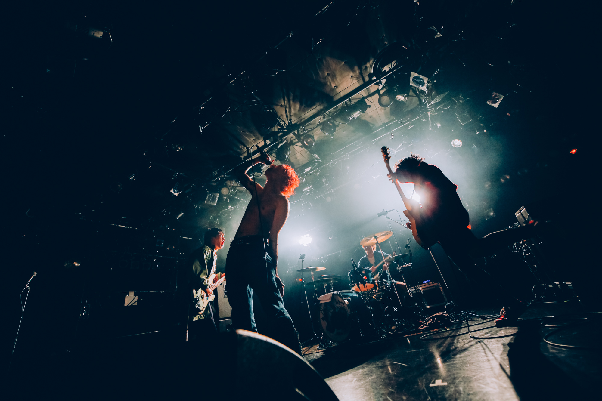 橋本の明るく楽しく的を得すぎたひとことで、なお一層この対バンが明るく楽しむ事が出来る。そして、いつの間にか曲は「ファイト!!」へと移り、関はスピーカーの上へと上り、橋本はマイクスタンドごと観客へと渡そうとしたりと劇的なひっちゃかめっちゃかに! 橋本は冒頭のサウンドクリエーター担当者の硬過ぎる前説をイジリ、その担当者にコール&レスポンスで威勢良く叫ばせて、「こういう感じでいきましょう!」と叫ぶ。関は凄い速さの助走をつけて下手から上手へギターを弾きながら前転したりと、とにかくめまぐるしい展開。でも、不思議なくらいに心地良い。