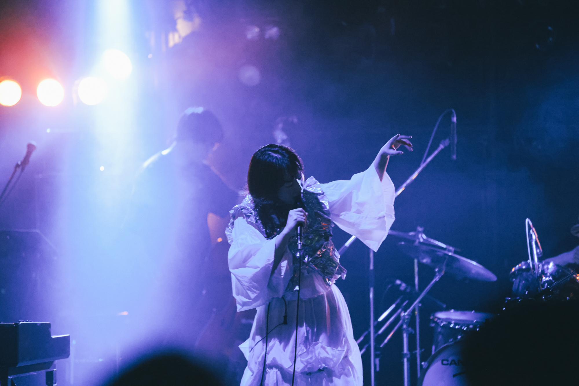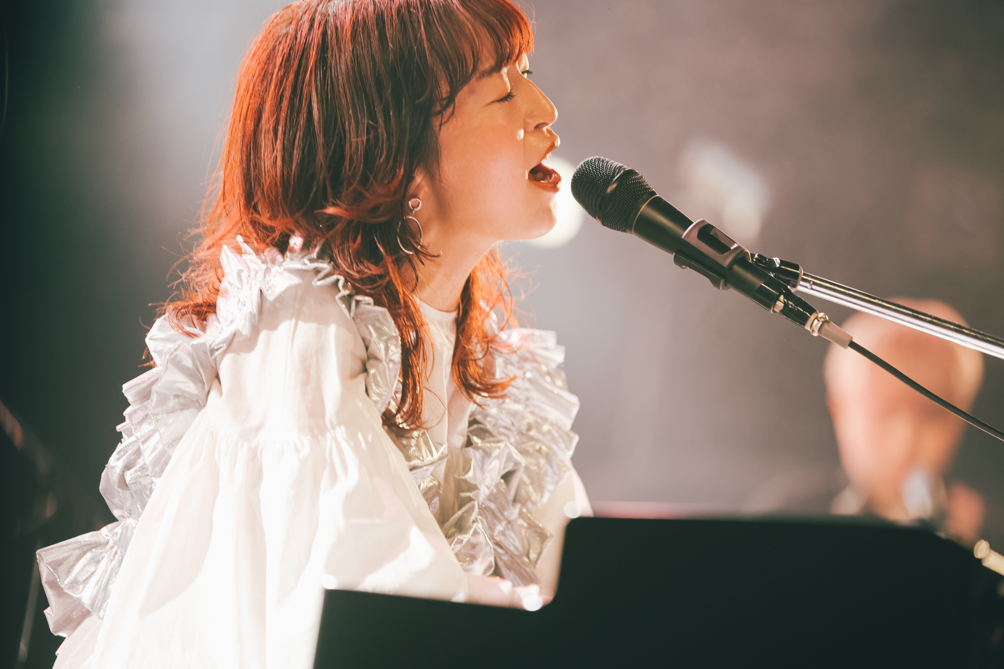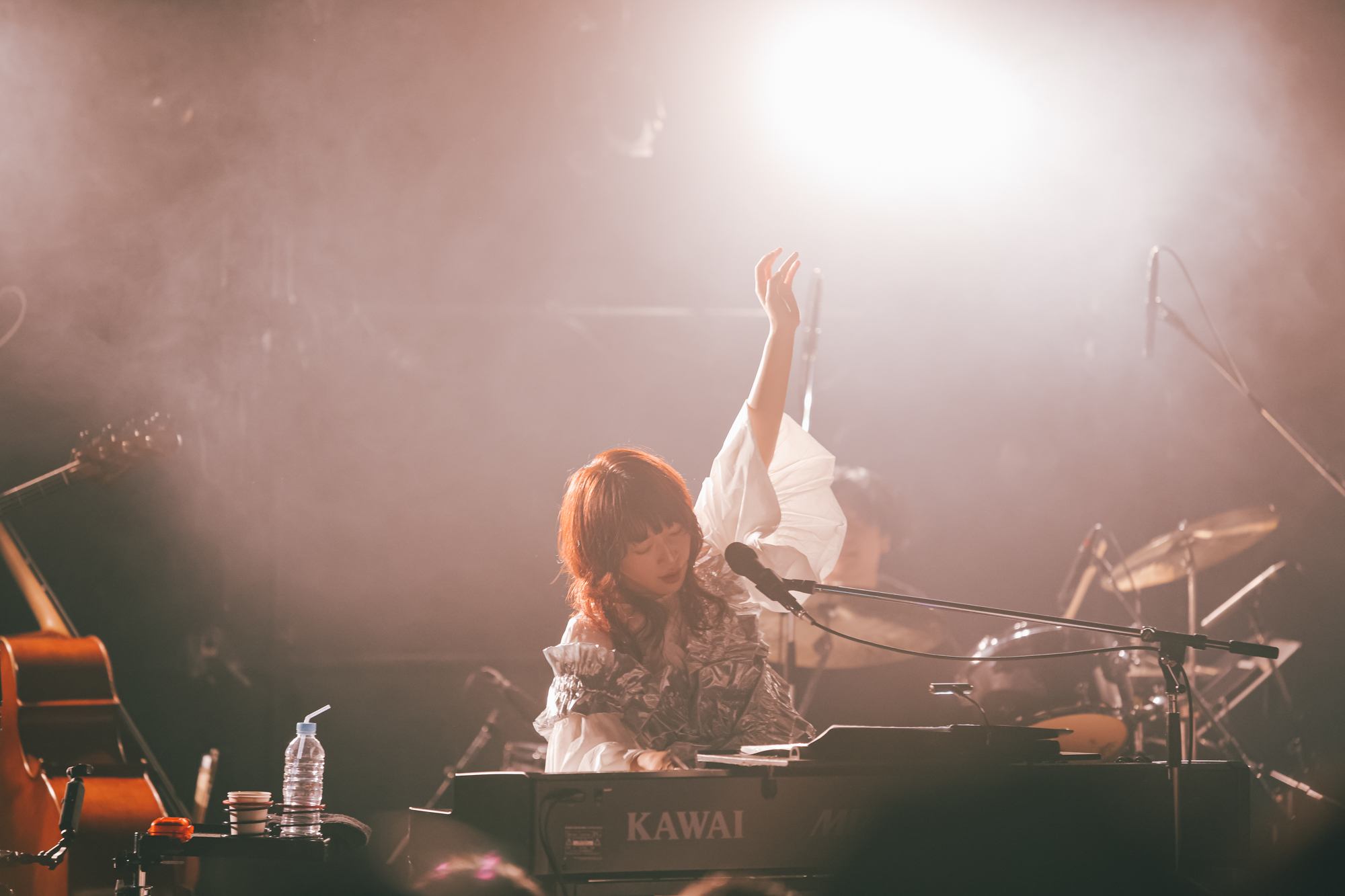 辞める人を決して否定するつもりはない。でも辞めないで続けている人に陽の目が当たるならば、そんな幸せな事はない。なので、歌を歌う事への真っ直ぐ正しき執念が鍵盤のみで訴えかける様に歌われていく「備忘録」は、もう、ただただ聴くしかない……。浴びるしかない、凄みしかなかった。終わった後、自然に起きる拍手。初めてヒグチアイを聴く人々にも絶対に伝わったはずだ。残響の余韻に浸る。