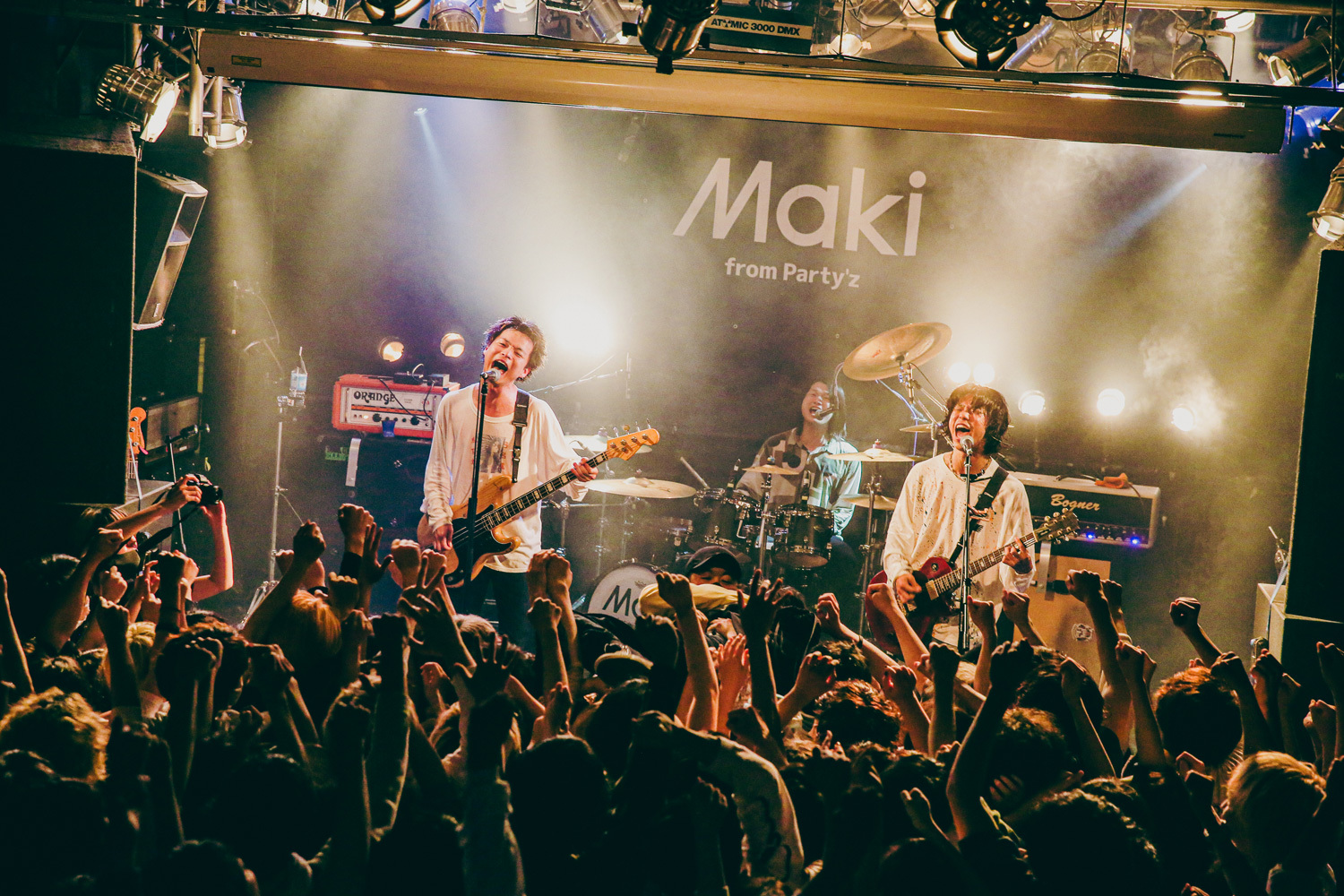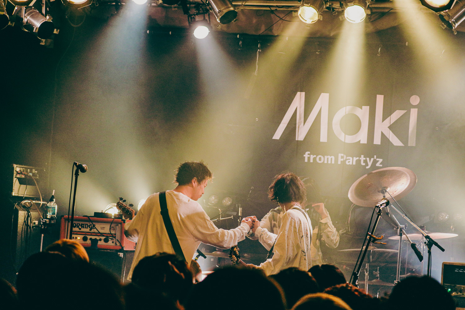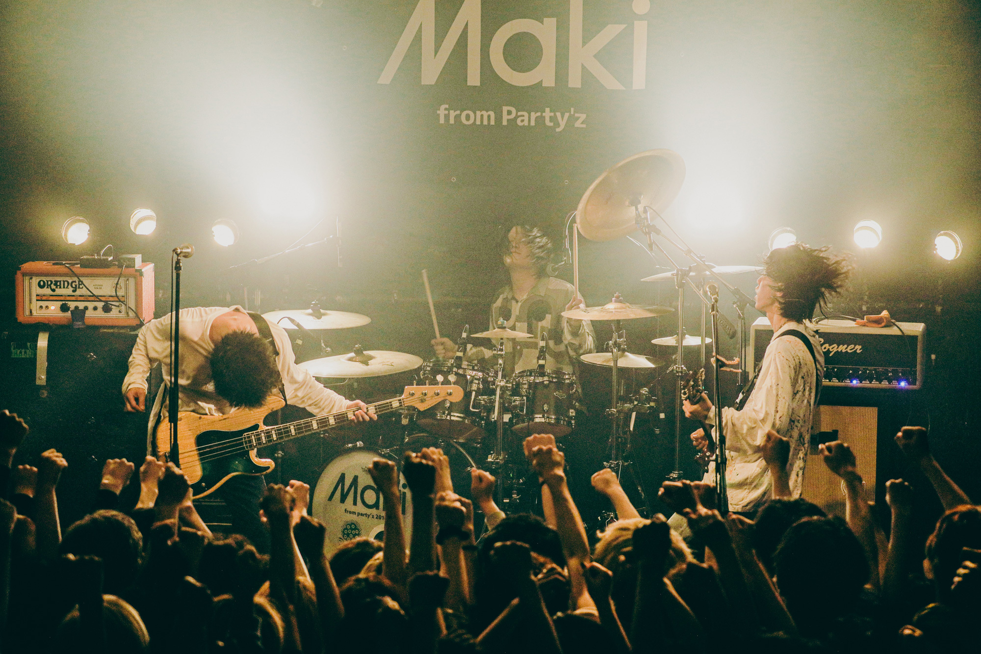 ステージに吊られるバップドロップには「from Party’z」の文字。Makiは今日も「この日々が俺たちの日常」「ライブハウスを一緒に守ってくれてありがとう」と何度も言ってた。きっとこの先も、ライブハウス出身である誇りと矜持を胸に突き進んでいくだろう。5月にはスリーマンライブ『Maki presents.三色』を東名阪で開催する。対バンだから起こる化学反応はもとより、Makiのライブへの情熱と愛情を感じに行ってほしい。