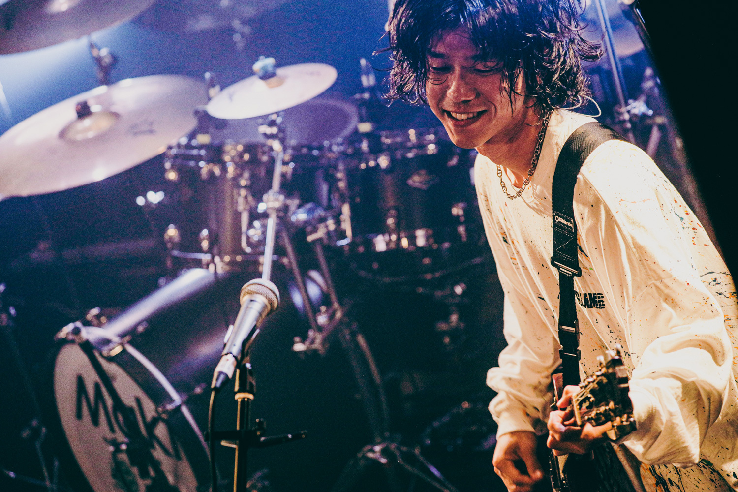 そして、麻雀用語の名前がつけられた本ツアーの思い出を振り返る。「やったことないバンドや自分よりちょっと若いなと思う人たち、出会えてない人たちに出会うツアーだと思ってます」。6箇所廻ってきて「得るものしかなかったです。俺らずっと先輩が多くてさ、先輩ばかり話したりライブで戦ったりしてて、先輩から盗めるもの全部盗もうとやり続けてたんだけど、俺らの知らないことを知ってるのは後輩も同じで、絶対俺の知らないことばっか知ってんだろうなと感じられるツアーでした。だから今までの曲も最高だけど、また良い曲できちゃうぞという感じです。どこに行ってもみんな楽しそうで、みんなの声を1番間近で聞けるツアーだと思ってたし、感無量です! ありがとう!」と感謝を伝えた。