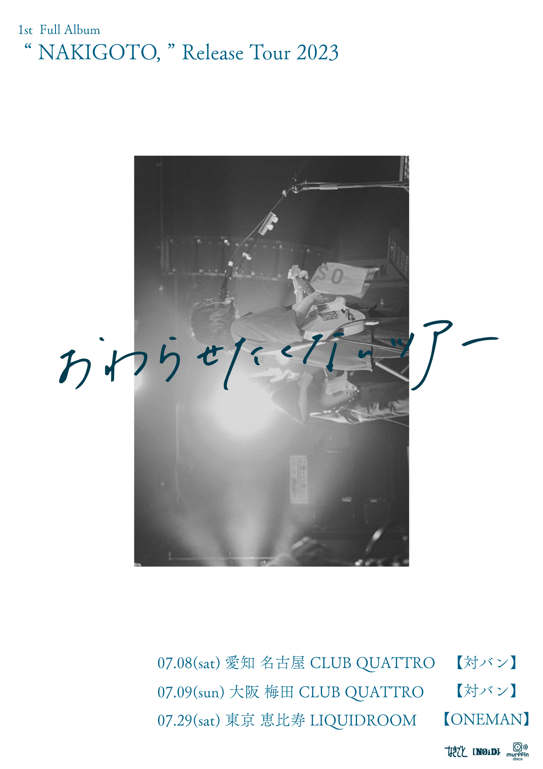 なきごとは、2023年1月より自身最大規模の全国ツアー『1st Full Album「NAKIGOTO,」Release Tour2023』を開催。自身初となるワンマンライブ・ツアーファイナルとなった4月30日(日)渋谷CLUB QUATTRO公演で、追加公演を東名阪で行うことを発表した。