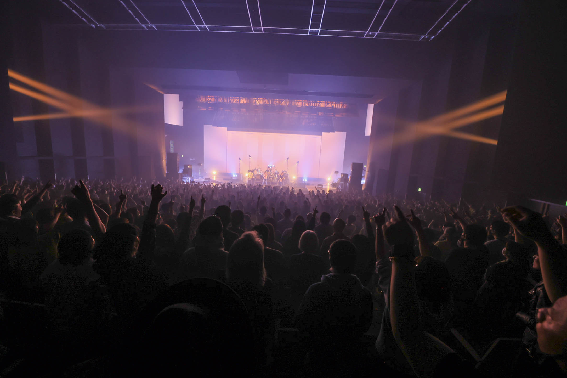 開演を今かと待ちわび、気合いの入ったオーディエンスで満員の会場。定刻となり恒例の前説が行われ、いよいよメンバーが呼び込まれると出囃子が流れ始め、そのリズムに合わせて観客は拍手で出迎える。メンバーが登場すると、割れんばかりの大歓声がステージに向けられた。