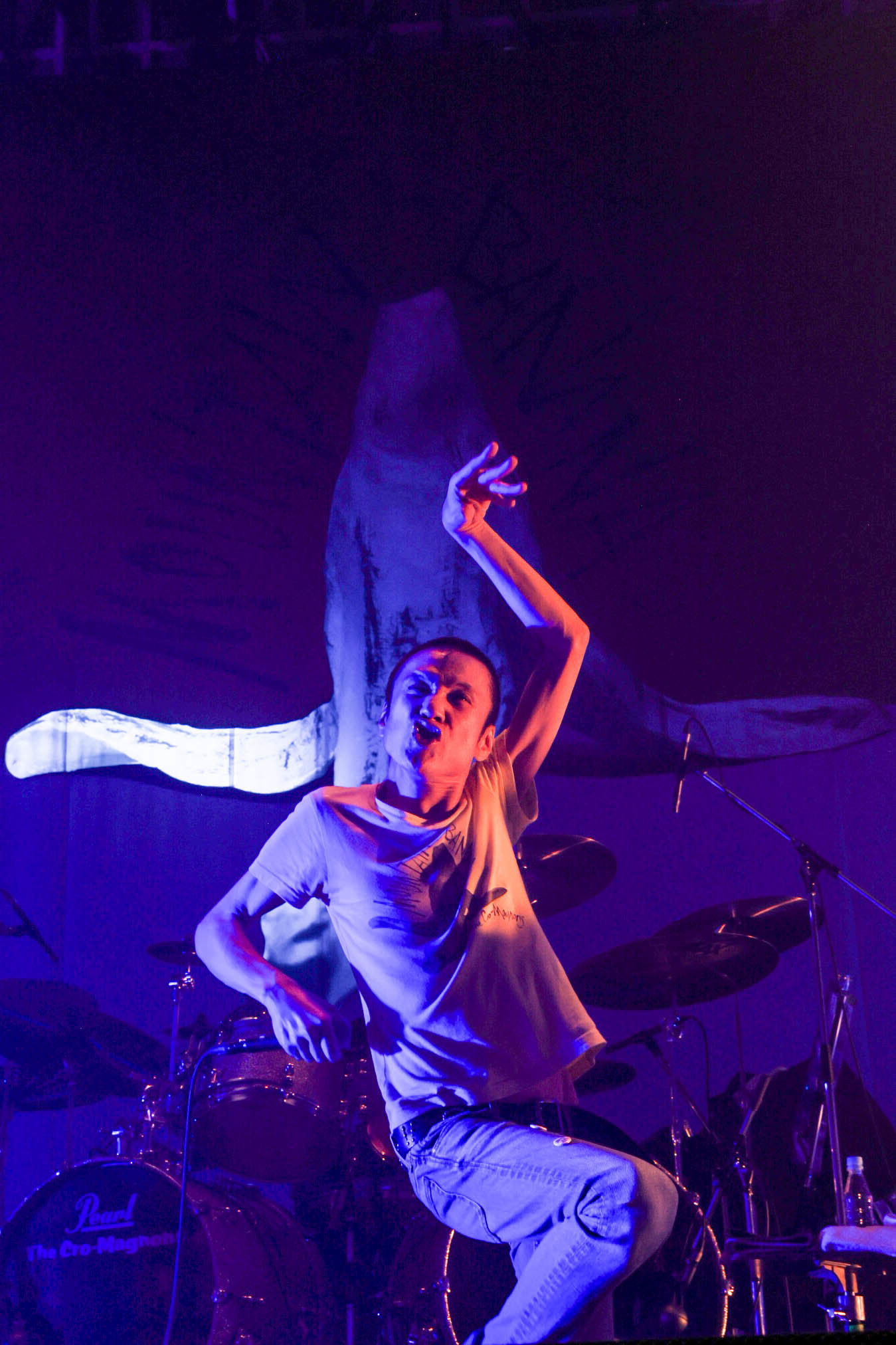 ライブは『MOUNTAIN BANANA』の曲順通り披露されるのだが、LPのA面最後の曲「一反木綿」の演奏が終わると、最新アルバムの楽曲以外からも「スピードとナイフ」「クレーンゲーム」「ごくつぶし」が披露され、B面へと突入。B面1曲目はNHK「ギョギョっとサカナ★スター」の主題歌でもある「イノチノマーチ」。B面の楽曲が披露される中、「キングコブラ」のタイトルコールの後、一瞬トラブルなのかとも思われる間が空き演奏開始されないというあまり見かけない珍しい光景もあった。仕切り直して再スタートされたのだが、これもまさに“ライブ”であり、今夜しか見れない場面だった。ヒロトがマーシーとコビーに歩み寄り、笑顔でその事について顔を近づけて話しているかのように見える微笑ましい一幕も。その後「さぼりたい」「心配停止ブギウギ」を披露し『MOUNTAIN BANANA』の全曲の演奏を終了し、ライブは終盤戦へ。