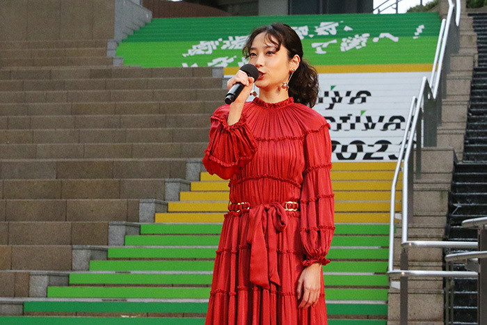パフォーマンスの後は新藤も参加し、本作が始動したきっかけや楽曲についてのトークが行われた。まずは観客を前に初披露した楽曲について聞かれ、新藤は「これからどんどん進化していくと思うけど、皆さんに歌ってもらったことで曲がイキイキして感動しています」と笑顔に。緊張していたという廣野をはじめとするキャスト陣も「良かった!」と胸を撫で下ろす。