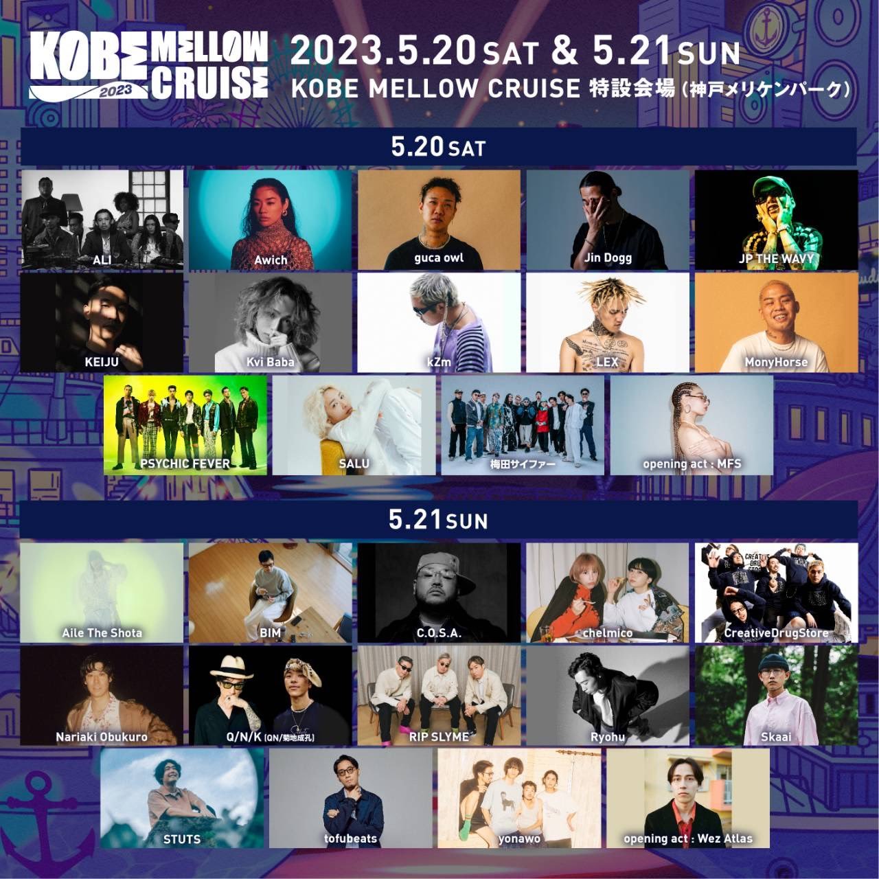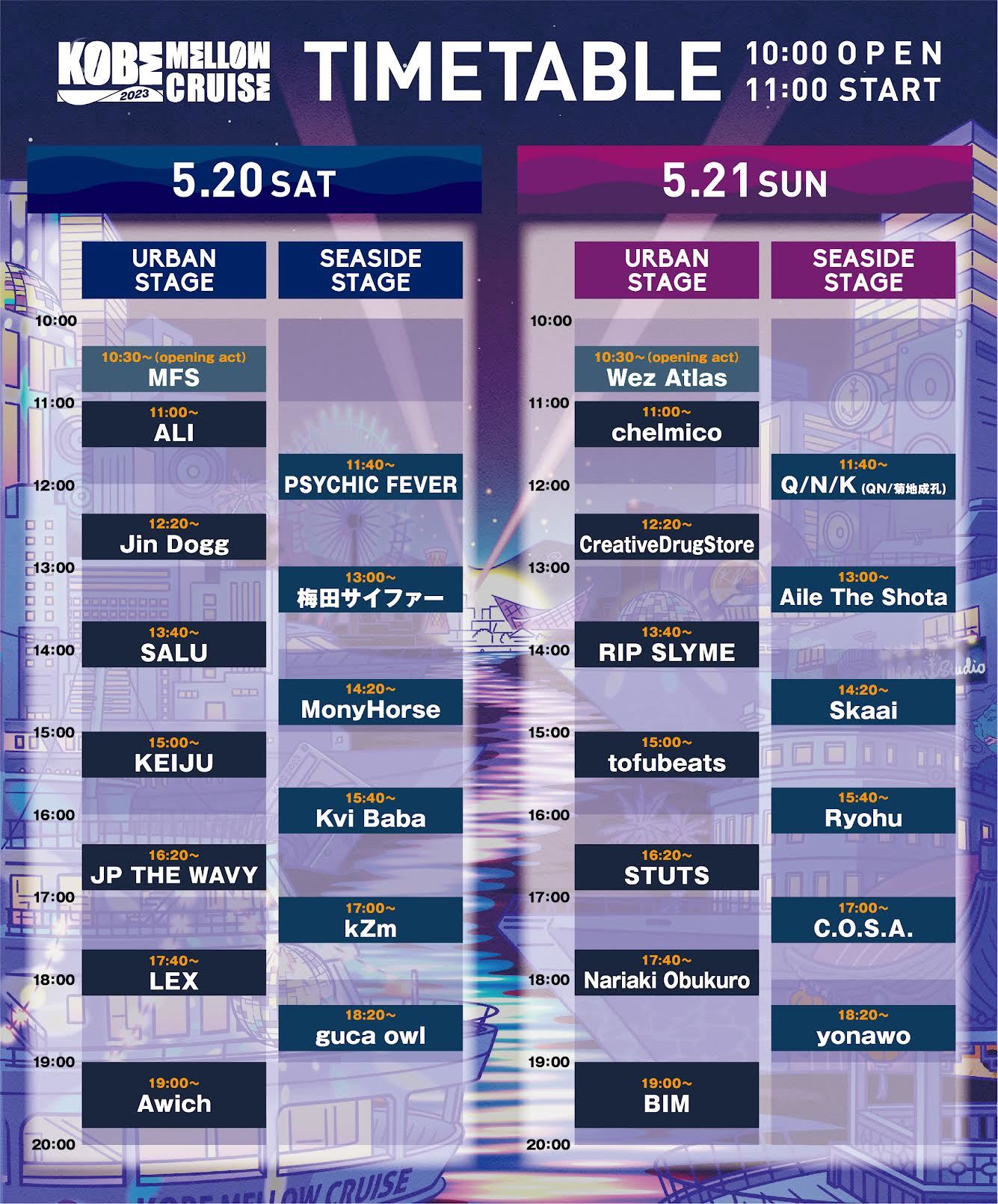 2023年5月20日(土)・21日(日)の2日間、神戸メリケンパークにて開催すされる音楽フェス『KOBE MELLOW CRUISE 2023』のタイムテーブルが発表された。