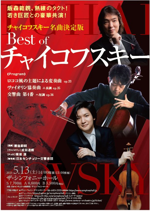 ザ・シンフォニーホールで2023年5月13日(土)に開催される『Best of チャイコフスキー』は、飯森範親&日本センチュリー交響楽団によるオール・チャイコフスキー・プログラム。なかでも、近年、一柳慧の最晩年の「ヴァイオリンと三味線のための二重協奏曲」を世界初演するなど、現代音楽の演奏にも傾倒し、ますます個性的な活動を繰り広げている成田達輝の弾くヴァイオリン協奏曲は、特に注目である。