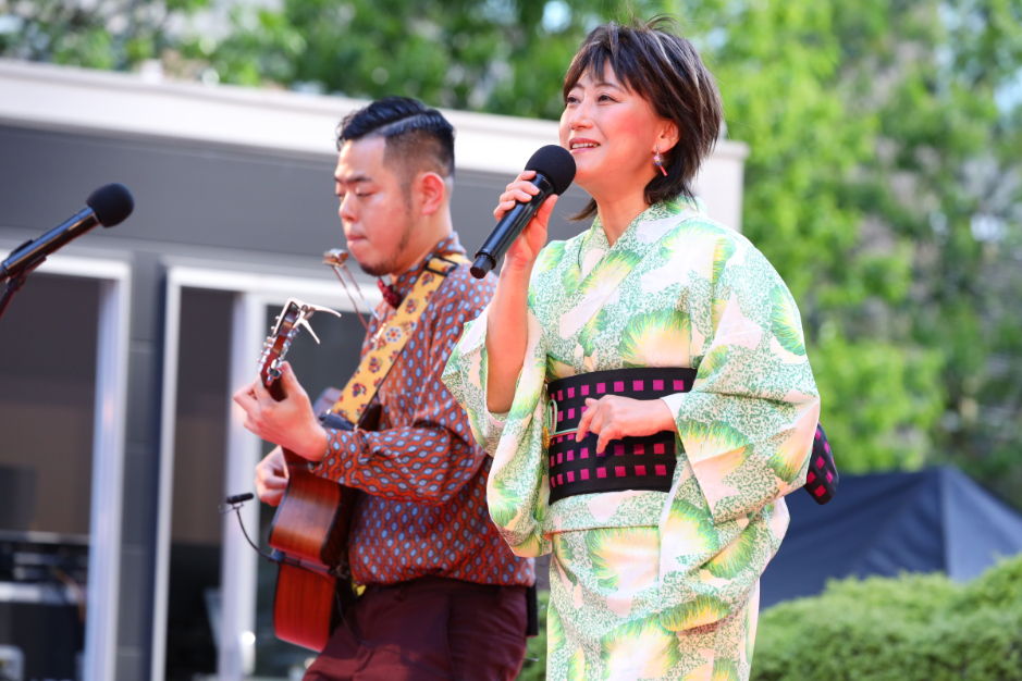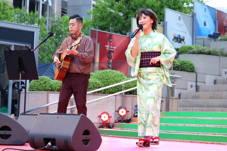 水谷千重子が、5月4日(木)に日比谷ステップ広場で開催された日比谷フェスティバルステップショー『水谷千重子特別ステージ』に水谷千重子が出演。自身が座長を務める明治座『水谷千重子 50周年記念公演』に先駆け、5曲を熱唱した。