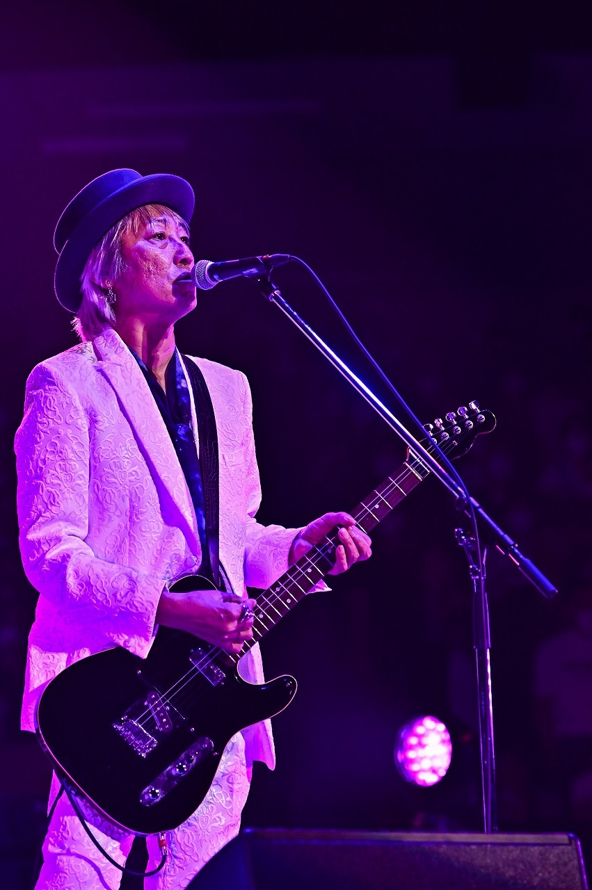 1曲目は「チャンドラー」(1984年)、2曲目「BABY BLUE」(1995年)、次は『天使たち』(5thアルバム/1986年)のリードシングルで、リミックスバージョンもよく知られている「Angel Duster」、4曲目は「Let’s go down the street」(1985年)──。と、前半は様々な時期のアルバムからピックアップされたミドル~スローな曲が中心になった構成。そして「one day」「すれちがい」「Pace Maker」と、初期の曲が続いたその流れは、「ありったけのコイン」で最初のピークを迎えた。