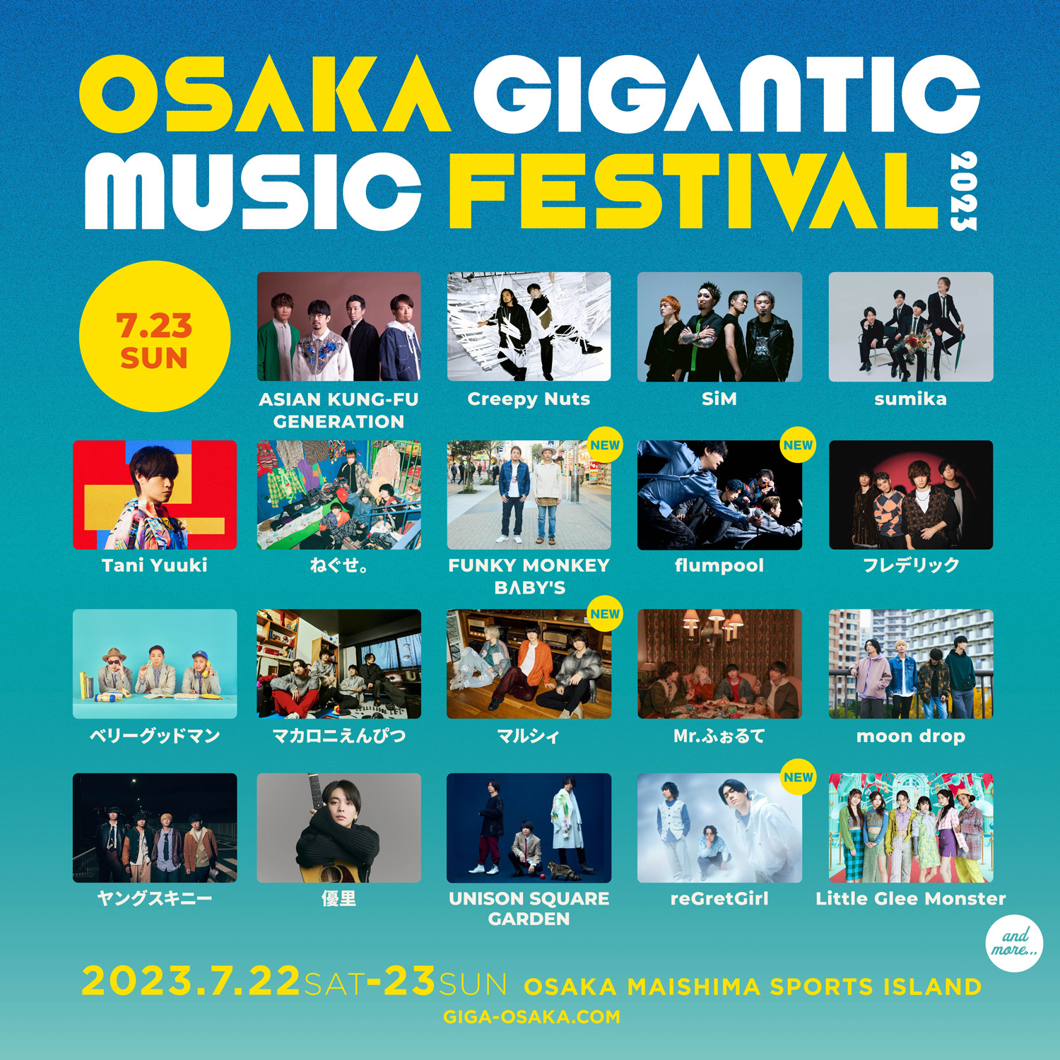 7月22日(土)・23日(日)に大阪・舞洲にて開催される夏フェス『ジャイガ』こと『OSAKA GIGANTIC MUSIC FESTIVAL』の第5弾出演アーティストが発表された。