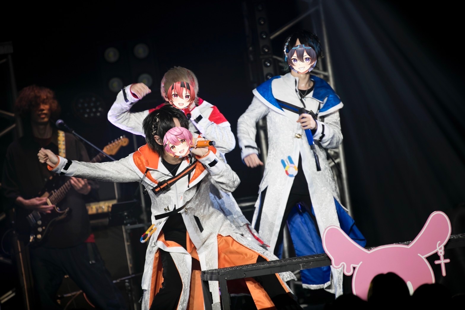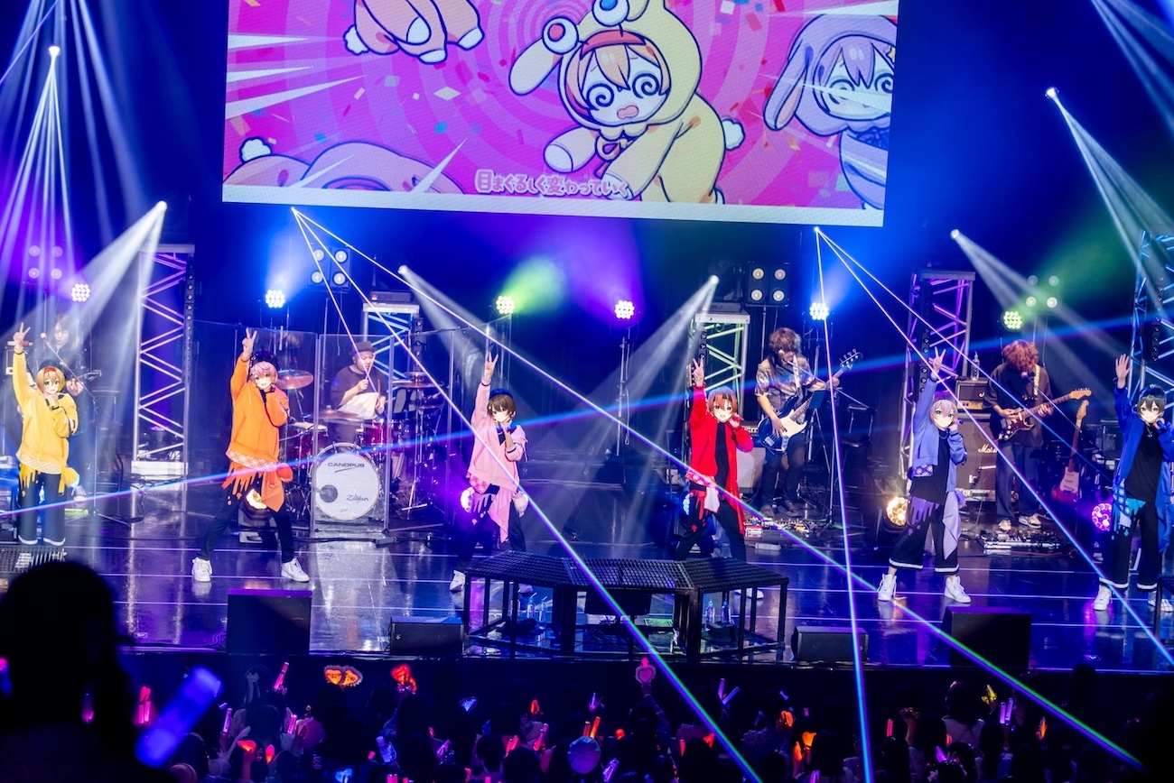 また、中盤ではふぇにくろとさくらくん。がノリの良いダンスソング「ダンスロボットダンス」を、まいたけとゆぺくん☆★は「ストリーミングハート」をアグレッシブに熱唱。身長差のあるコンビ、ポケカメンとかにちゃんは「ベノム」で場内からの声援を引き出し、後半に向けて一体感を高めた。曲によって、個々のキャラを引き立たせたり、マネしたくなるキュートな振り付けや、面白いトークで、観客は完全にライブに没入。気づけば本編は後半に突入していた。