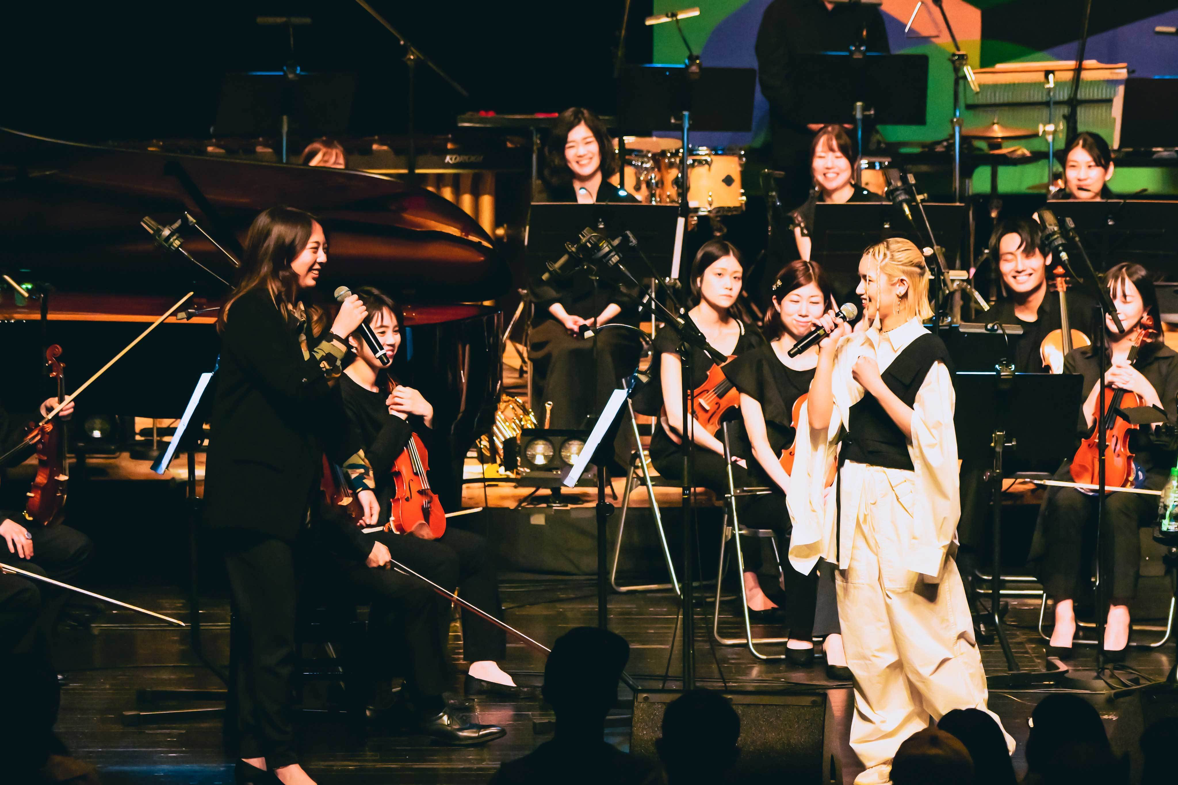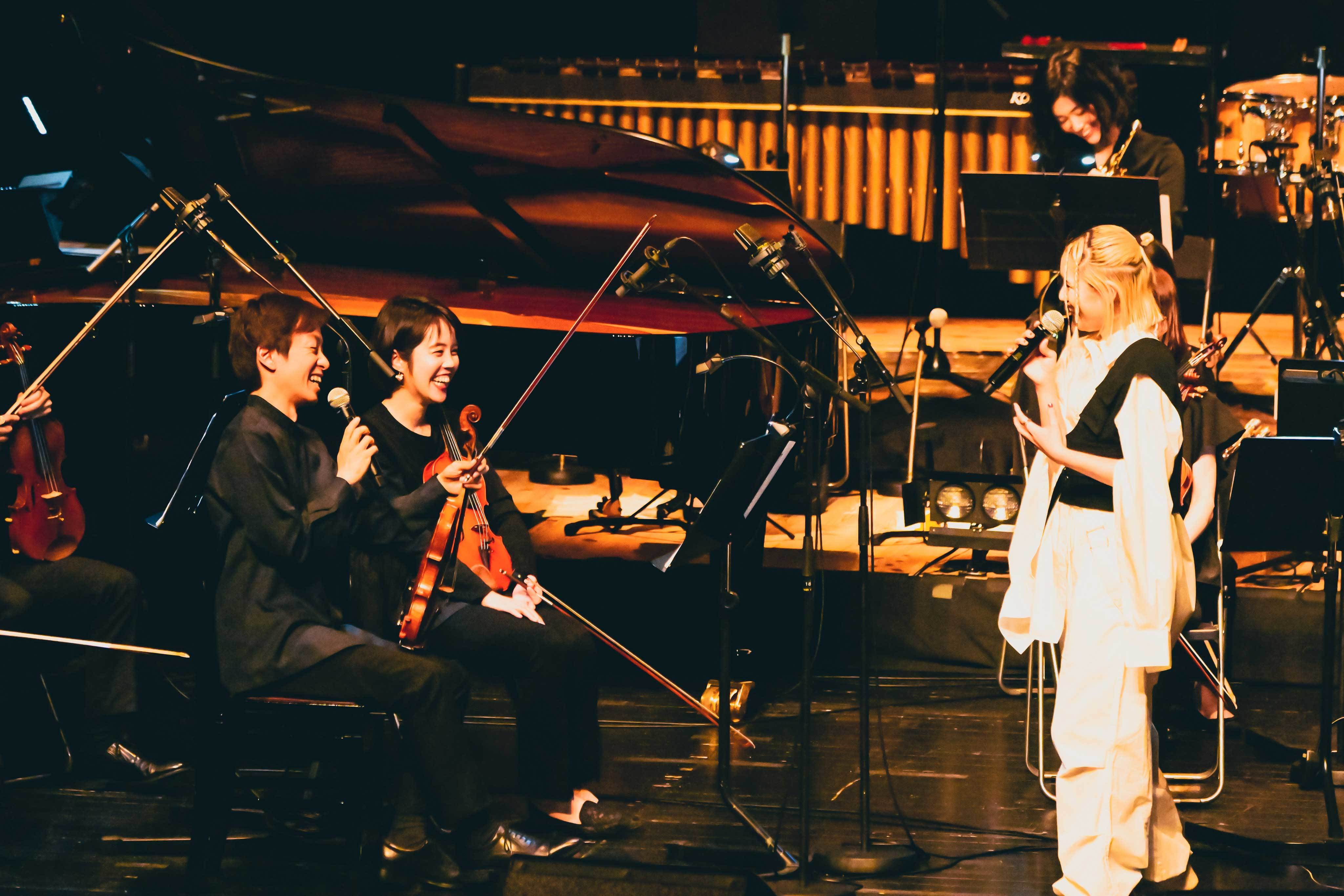 松元もニコニコして「このライブめっちゃ良くないですか? なかなかオーケストラメンバーの声を聞くことないですよ」と興奮しきり。トークをオーケストラメンバーに振るというのも、実は打ち合わせの時に決まったことだ。「オケの方に話しかけてみたいとおっしゃって、そういうことがあるんだと思って感動したのを覚えてます」と松元。まさにライブハウスの文化とクラシックの文化が融合し、それが良い方に作用していると証明された瞬間でもあった。
