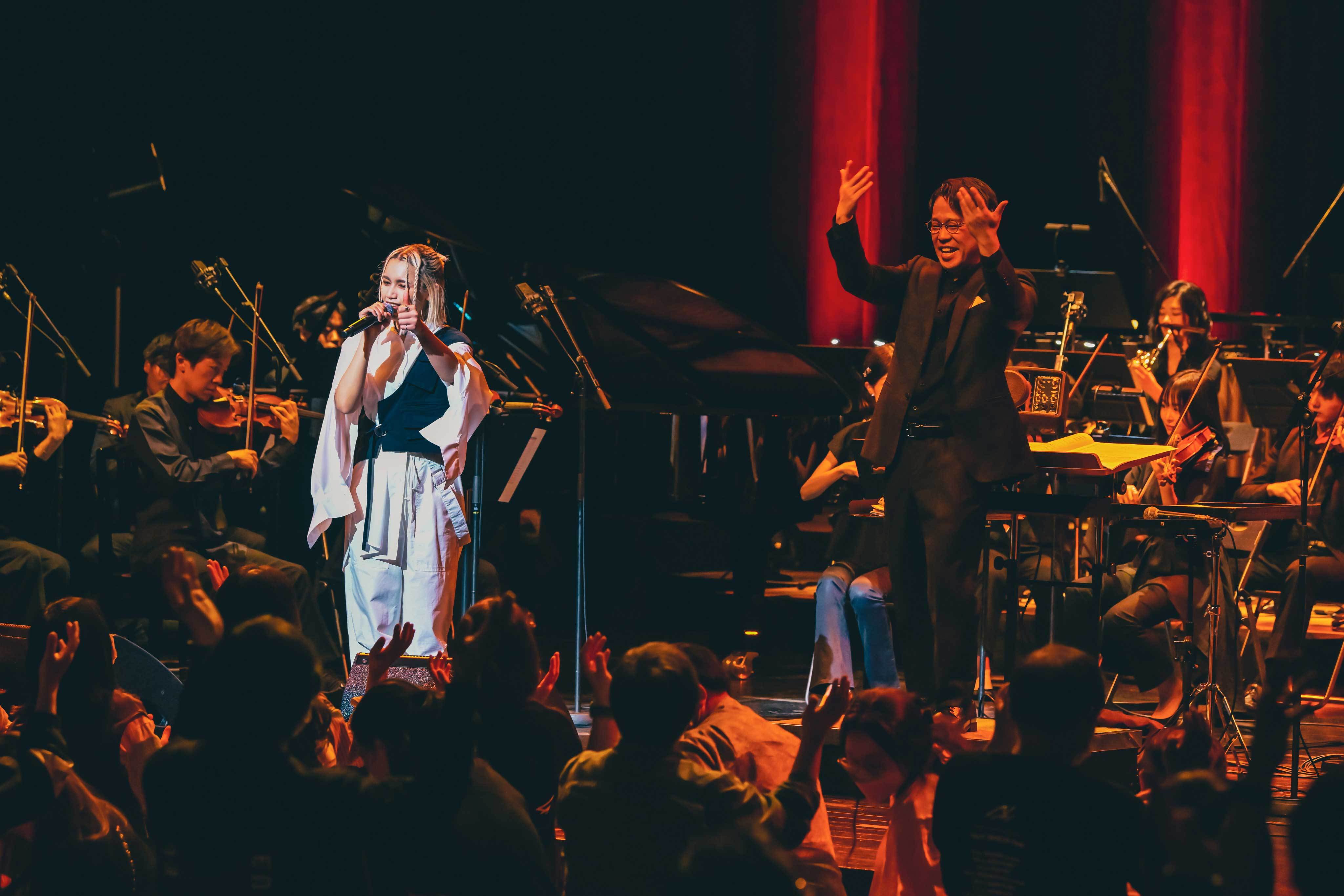ここで、本公演の全曲をアレンジした「裏ボス」こと湖東を呼び込んだ。湖東は「本当に感動しました。昨日も感極まってますと言ってたんですけど、今日はマジでずっと泣いてました。私はそんなに涙腺ゆるくない方だと思ってたんですけど……。何で泣いたのかなと思った時に、音楽のパワーをすごく感じる会場なんですよ。奏者の方ともAnlyさんとも、4月5日に初めて会ってから1ヶ月くらいですけど、奏者の皆さんがすごく優しくて愛を感じて、このお仕事に取り組んでくださって。Anlyさんも本当に気さくに接してくださって、そういう1つひとつのことがどんどん音楽に影響していって、それが皆さんに届けられて、こうやって立ってくださったりして盛り上がって。そんな音楽のパワーをすごく感じて、何て良い空気なんだと」と時折声を震わせながら語っていた。Anlyは「(湖東は)天才なんですよ。これからずっと続いていくと思うので、今後ともよろしくお願いします」と、彼女に全幅の信頼を寄せた。