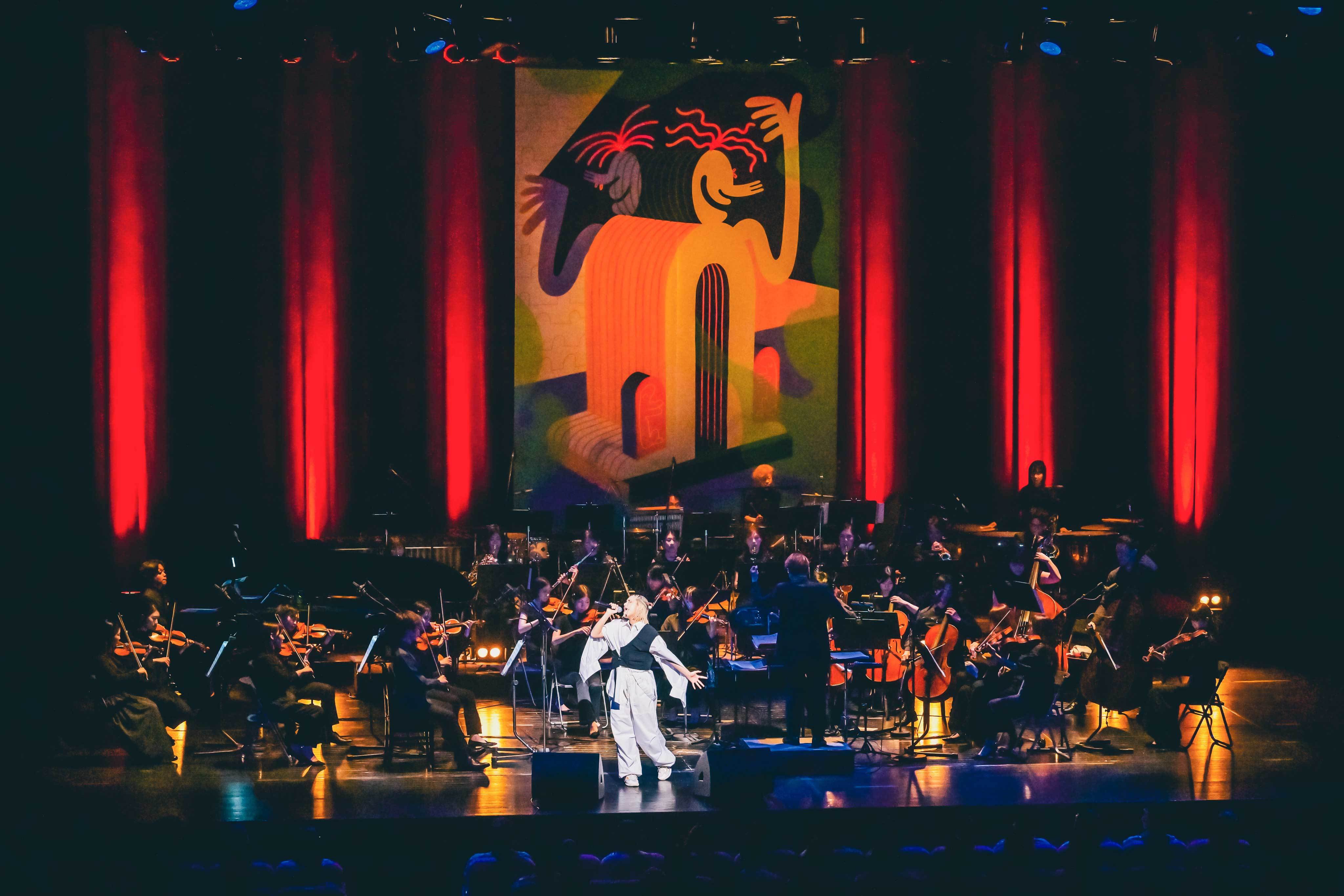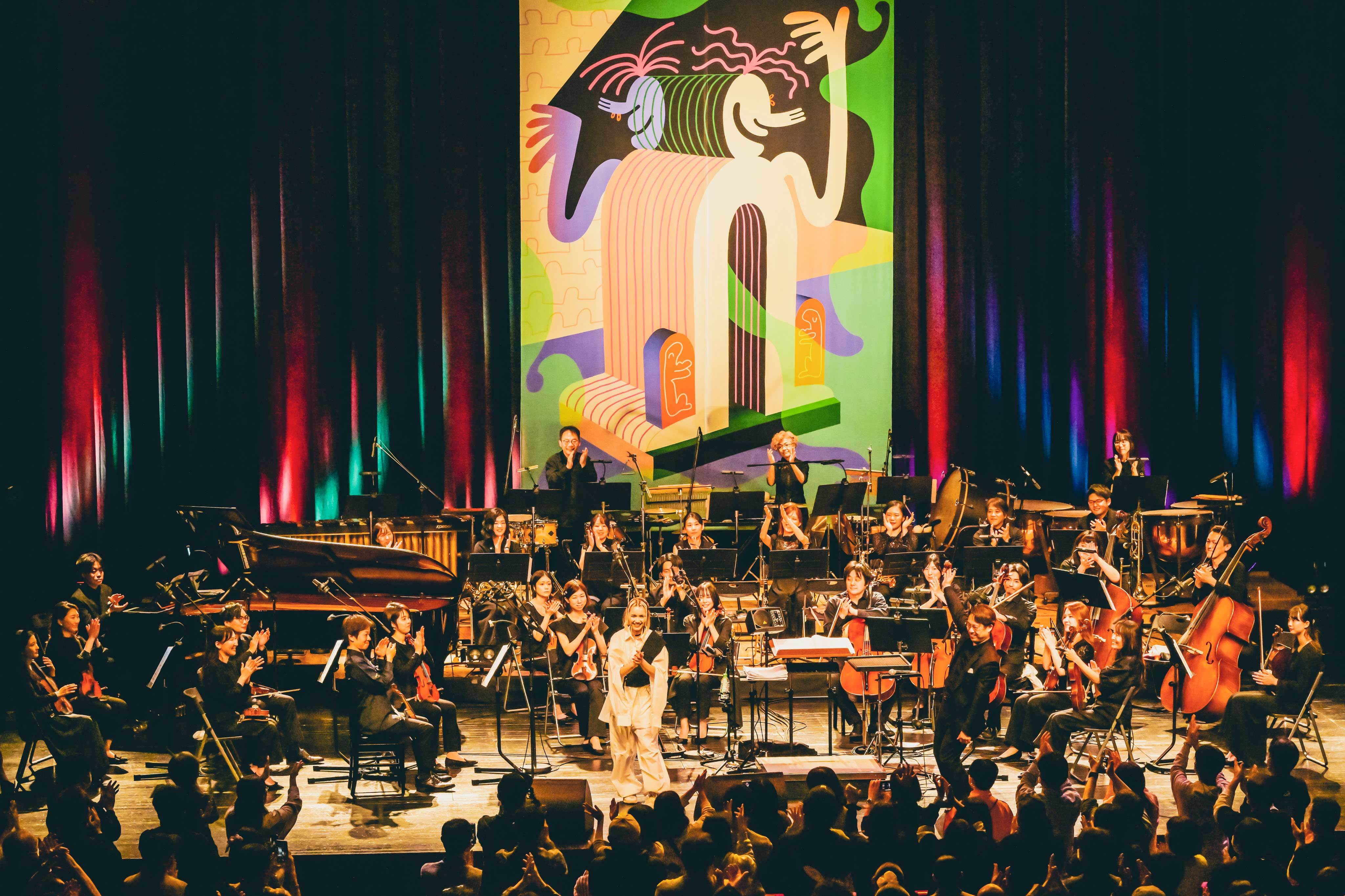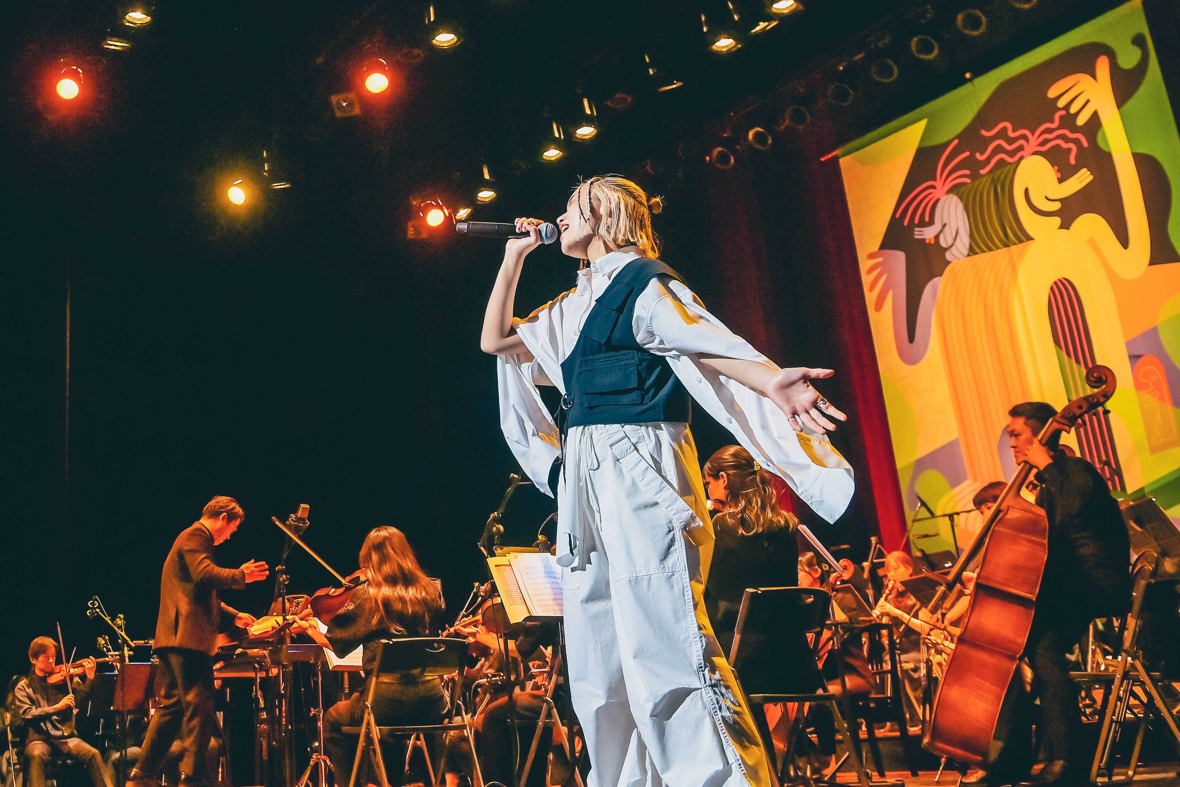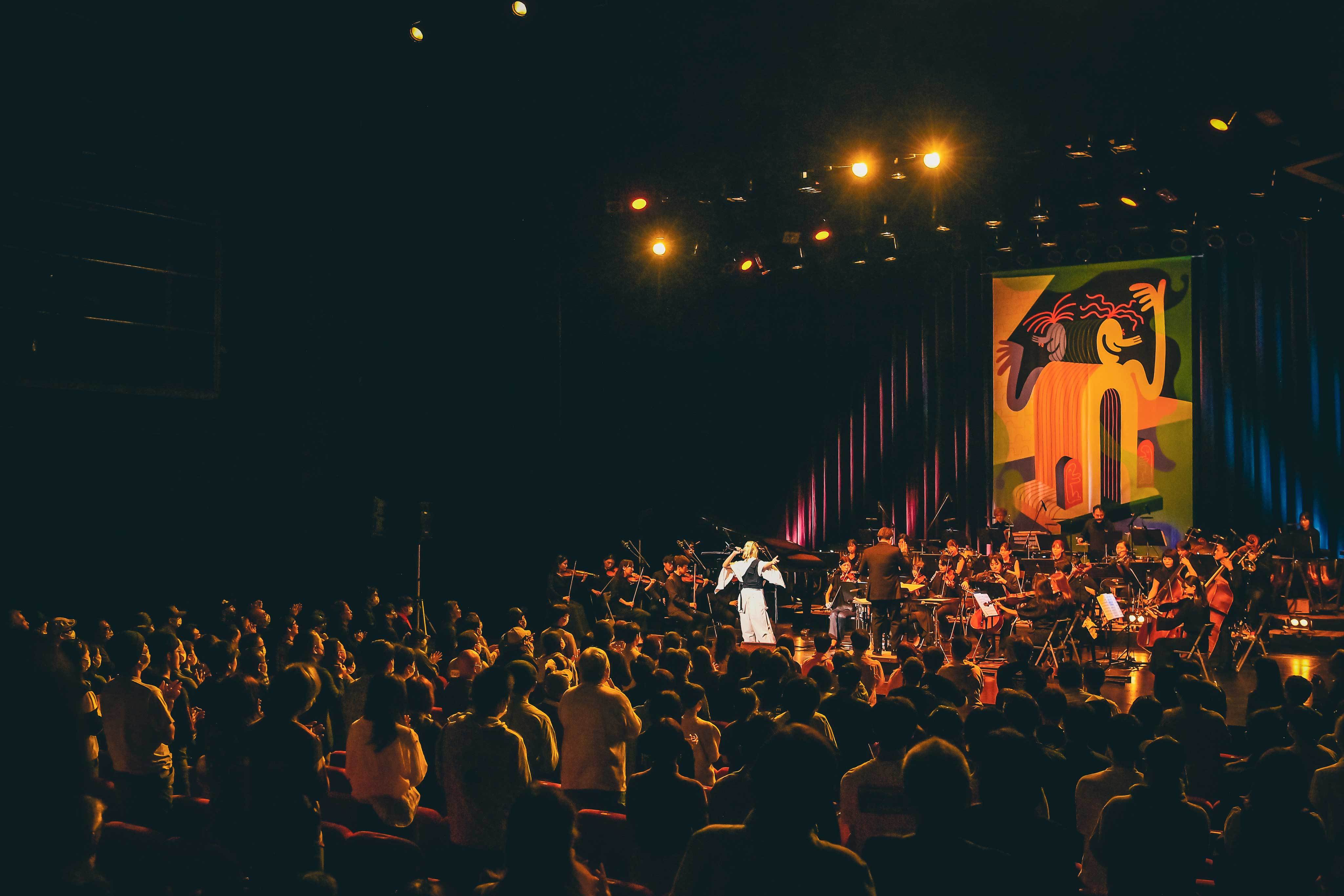 ステージ上には、アーティスト・Keeenueが描き下ろしたキービジュアルのバックドロップが吊るされている。暗めの照明でムードを高めている会場には、AnlyセレクトのBGMが流れていた(この日流れていたのは、アメリカのロックバンド、The Band CAMINO)。これは打ち合わせでAnly本人が提案したもの。いつもAnlyがライブで使用しているBGMを流すことで、初めてオーケストラを見るAnlyファンがリラックスできるように、また普段オーケストラを見慣れている人がAnlyのライブの雰囲気を感じてもらえるようにとの意図が込められている。とはいえ、厳かな劇場の力もあるのだろう。会場内には少しだけ緊張感が漂っていた。