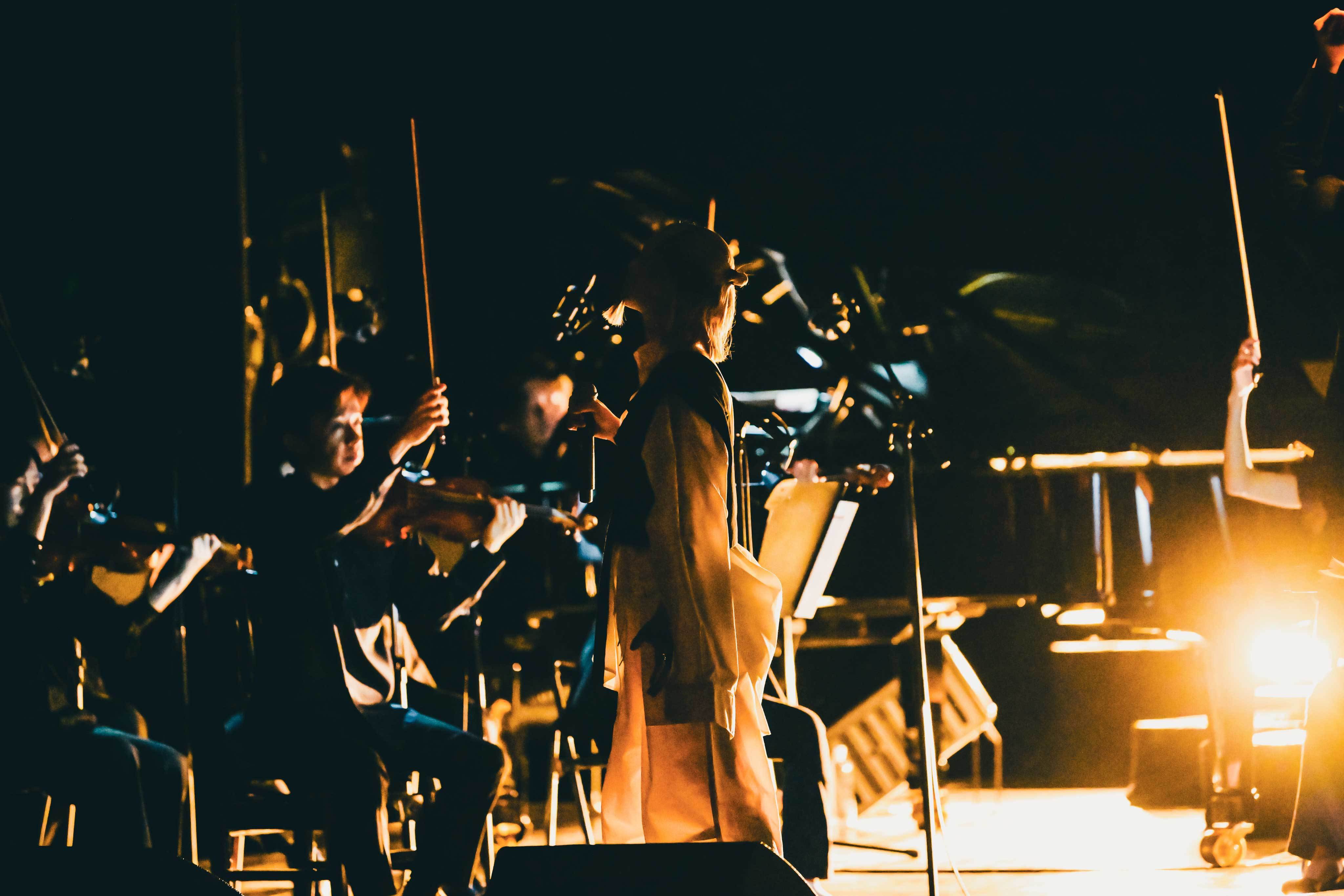 本編に戻り、「Style 京to琉」のために書き下ろした新曲「月下美人-Queen of the Night-」を披露。「月下美人」は「白いドレスを広げたような綺麗な花なんですけど、一夜しか咲かない儚さにキュンときました。生きている中で何気なく過ごしていても、覚えておきたい美しい瞬間があると思うんですよね。今日もそんな瞬間になればいいなと思ってこの曲を歌います」と伝える。テーマ性をそのまま表すような美しいメロディーと演奏は、神秘的ですらあった。聖母のような優しさと母性を感じるソプラノ(もはやオペラのよう)とオーケストラが広げる世界観にうっとりする。
