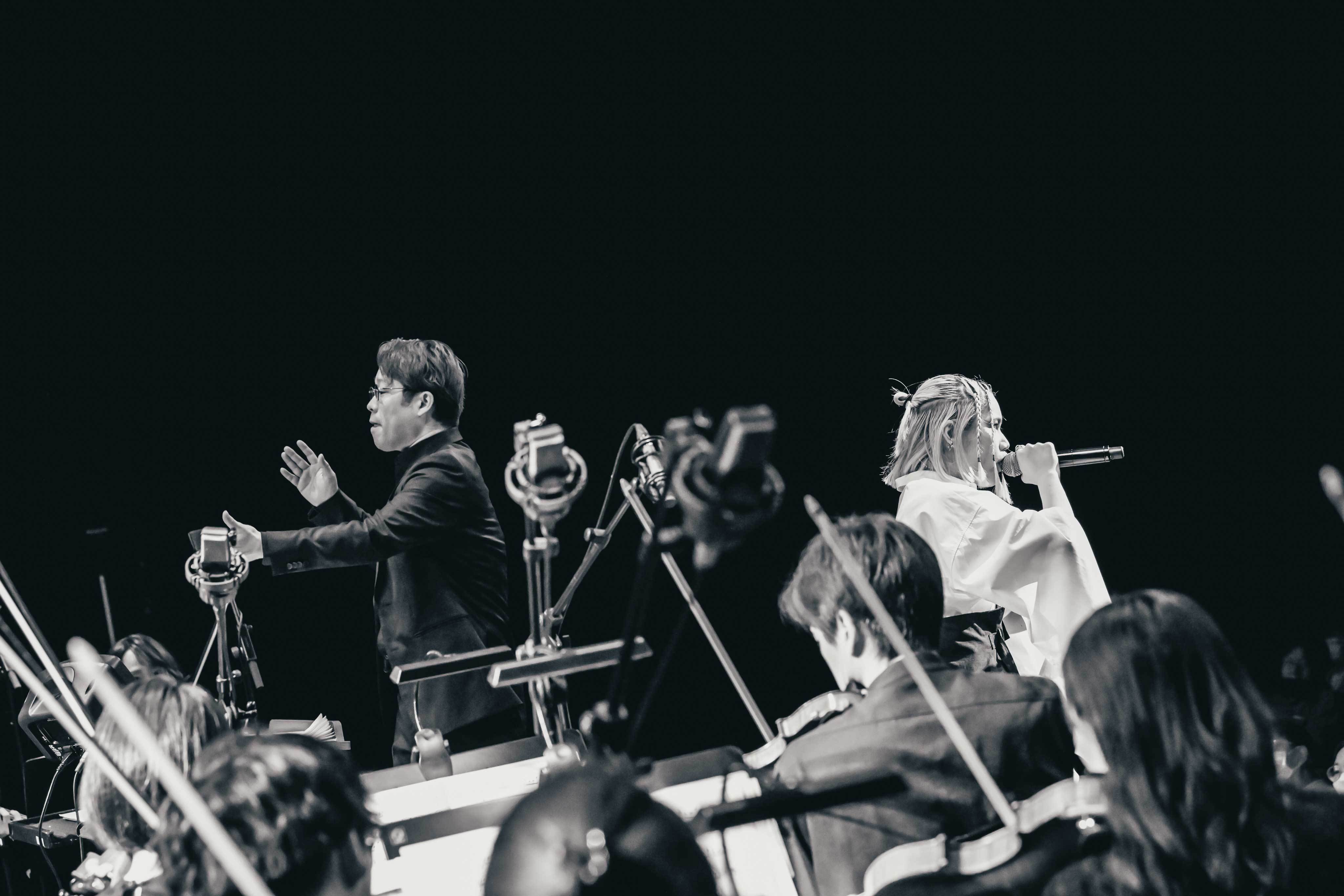 曲を終えるとAnlyは「いや〜、カッコ良かったね(笑)」と満足そうに自画自賛。そして「ちょっと話しません?」と松元をトークに誘う。「バンドの手綱を握るボス」と紹介された松元は「最高ですよ! 指揮をしてるとずっと背中向けてるわけじゃないですか。でも背中からお客さんの熱気がすっごい伝わってきます。どんなこと考えてるかとか。めちゃめちゃ盛り上がってますよね。オーケストラだけど、いつも通りのライブの感じで見てくださいね」と興奮したように声を上げた。