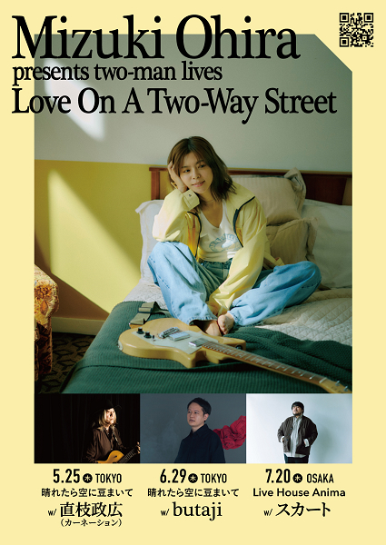 大比良瑞希が、東京大阪で3か月連続で行うツーマン弾き語り自主企画イベント『Love On A Two-Way Street』の6月29日(木)東京「晴れたら空に豆まいて」公演にbutajiが出演することが決定した。