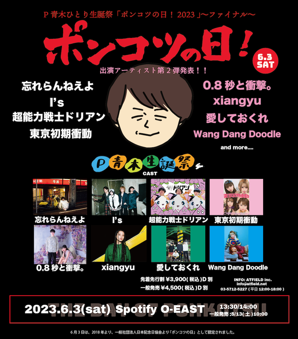 2016年より開催されているライブプロデューサーP青木の生誕祭ライブイベントが、6月3日(土)に渋谷Spotify O-EASTにて開催。今回、追加出演者が発表された。