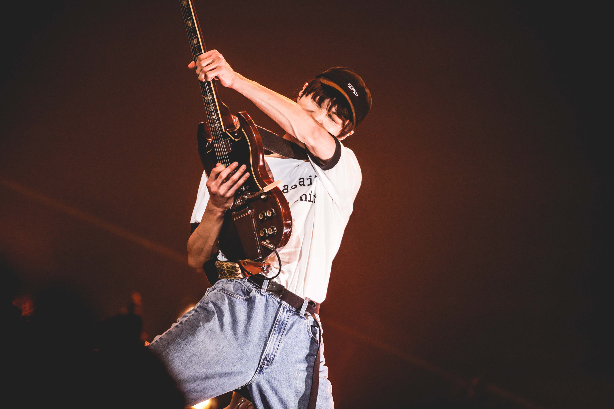 さらに「リライト」とアンセムの連続で会場はヒートアップ! ライブアレンジのセッションがアダルトでカッコ良いなぁ……と浸っていると、後藤が「こんばんは、ASIAN KUNG-FU GENERATIONです」と話し始める。「俺たちは暗くて汚いライブハウスから20年ぐらいかけて、叩き上げてこのステージにやってきて。ここ3年ぐらい本当にライブハウスの状態はマジで辛くて、色んなミュージシャンが心を悩ませてきて。でもこうやってフェスとかできることが本当に嬉しい。皆が集まってくれてることが俺たちのエネルギーになってます」と述べ、「俺たちらしく最後まで演奏するんで、自分らしく自由に。良いんだよ、サイリウム?むしろ俺はつけてほしいなと思っちゃって。ライブハウスじゃ見ないから逆に嬉しい」と話し、曲に戻って壮大にグルーヴを響かせる。