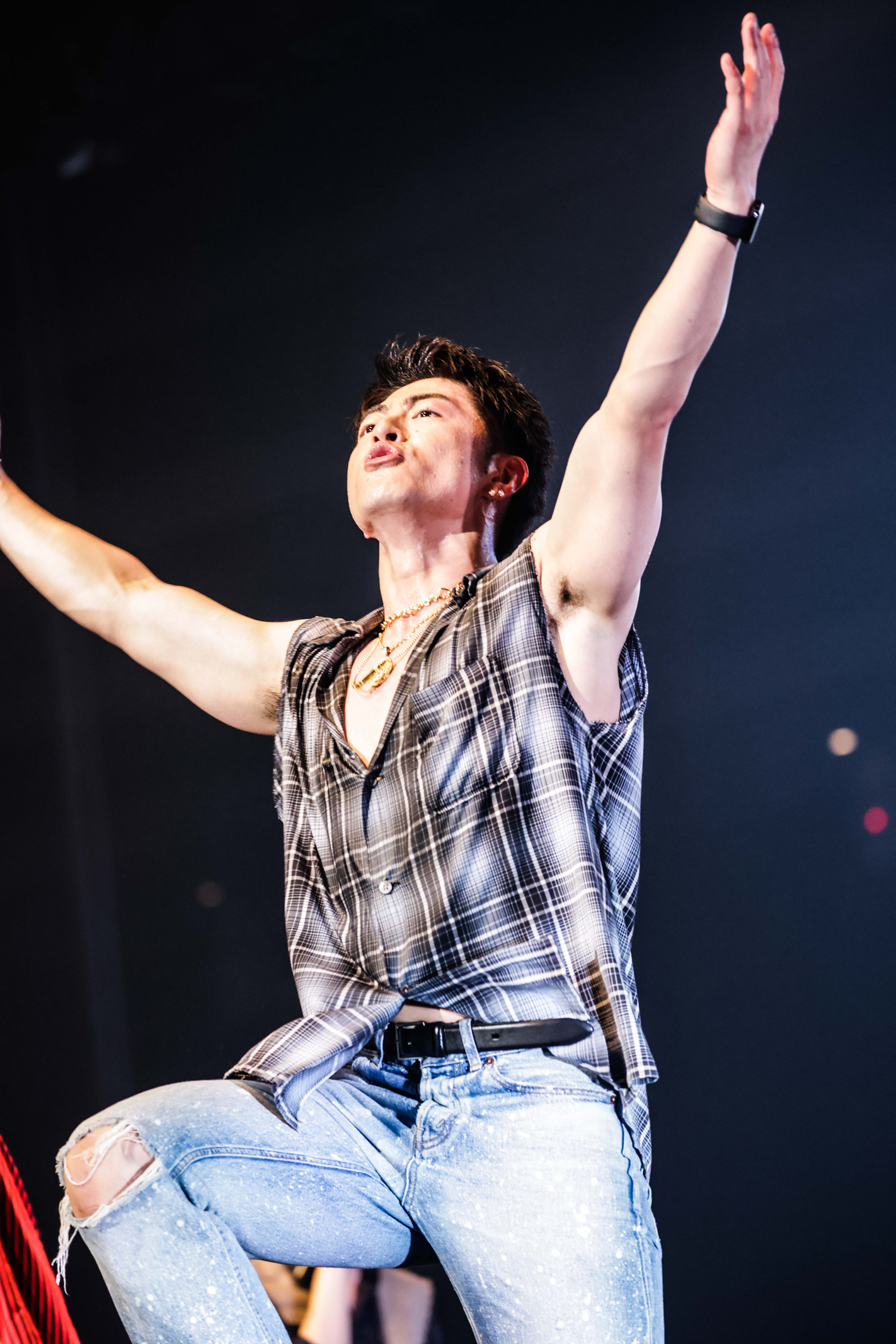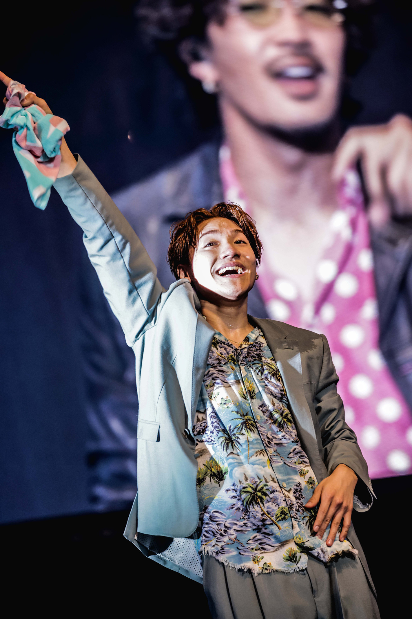 片寄涼太と数原龍友の歌声が伸びやかに響き、白濱亜嵐、小森隼、佐野玲於、関口メンディー、中務裕太のダイナミックなダンスが圧巻する。「AGEHA」を経て、GENEらしいEDM調アレンジの「Y.M.C.A」をパワフルにプレイしながら<Y! M! C! A!>と客席を踊らせる。関西出身の数原が「あかんあかん、関西の人こんなもんちゃうやろ!」と煽ると熱量はまたも上昇。ジャンプで盛り上げた「Evergreen」を経て、MCでは「熱気がすごいな」と片寄。GENEを知ってるけどライブは初見という人の多さにメンバーはテンションを上げる。