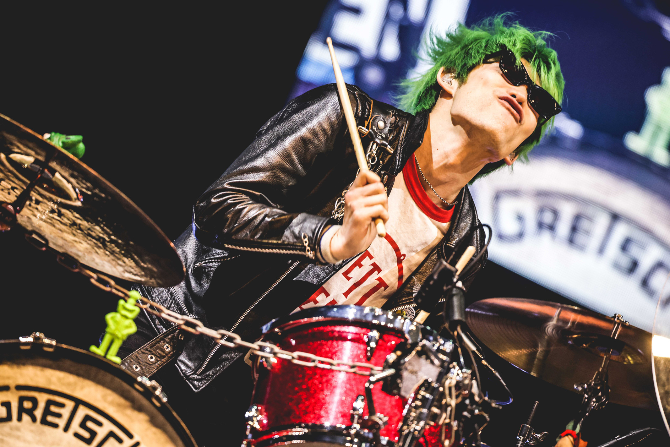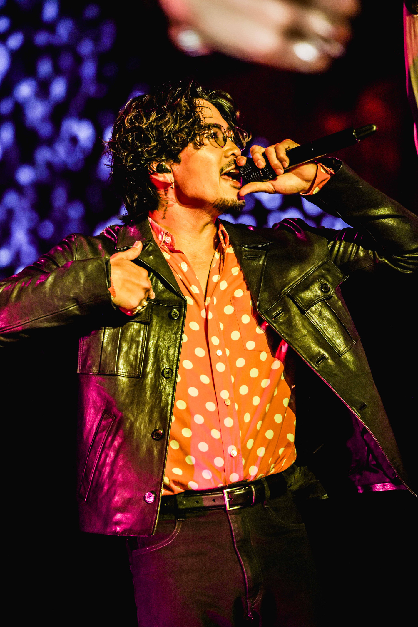 続いてはgo!go!vanillas。彼らを呼び込む際の大抜のMCが胸に迫るものだったので紹介したい。柳沢進太郎(Gt)の加入前から彼らを知る大抜。徐々に力をつけて中核バンドになった。「でも途中でベースのプリティが怪我で出られない年があって。その年の最後、岐阜のフェスで3人のライブが終わって楽屋で牧くんにすごいねと言ったら、「違うんですよ。俺ら、4人が最高なんです」と。それから4人で動き出したけどコロナがあって、諦めずにやり遂げて去年の『フジロック』。目標だったGREEN STAGE。前日に進太郎はコロナになって出られない。急遽、特別な編成を組んだ。終わって牧くんにすごかったねと言ったら「違うんですよ。俺ら、4人が最高なんです」常にそう言っていた。昨年9月に城ホールを満員にした。ライブハウスから4人でこの会場まで持ってきた、それが彼らなんです!」と、長年彼らを見守ってきた大抜だからこその熱い言葉に後押しされて、牧達弥(Vo.Gt)、柳沢進太郎(Gt)、長谷川プリティ敬祐(Ba)、ジェットセイヤ(Dr)、サポートキーボードの井上惇志がピースをしながら登場。大抜の熱が伝播した会場は早くも最高潮の高まりに。