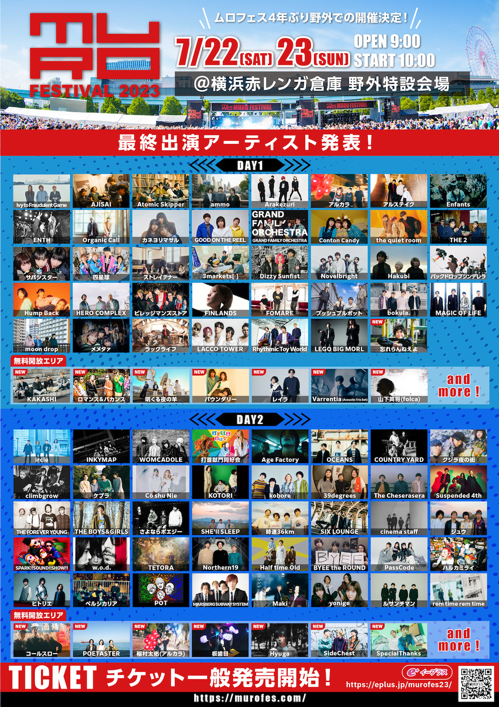 7月22日(土)・23日(日)に横浜赤レンガ倉庫にて開催される『MURO FESTIVAL 2023』の最終出演アーティストが発表された。