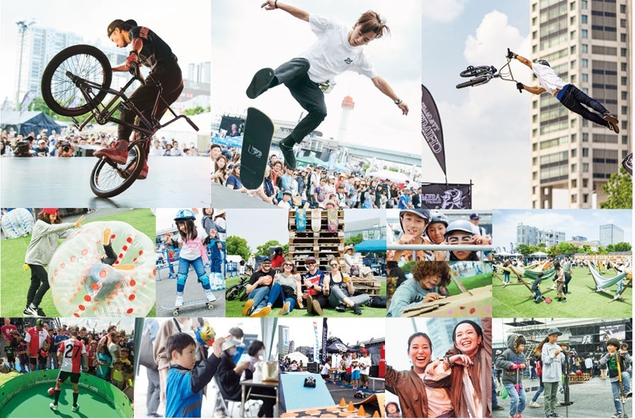 このイベントは「スポーツ、カルチャー、音楽の融合」を謳う体験型エンターテインメントフェス。スケートボードやBMXといったエクストリームスポーツのパフォーマンス、注目アーティストによる音楽ライブ、ダブルダッチやスラックラインといったカルチャースポーツ、けん玉、ヨーヨー、エアリアルヨガなどなど……。老若男女が楽しめる催しを多数用意して、さまざまな体験ができるイベントとなっている。