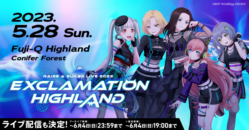 RAISE A SUILEN LIVE 2023「EXCLAMATION HIGHLAND」においても、6月4日(日) 23:59までアーカイブ配信を視聴できる。