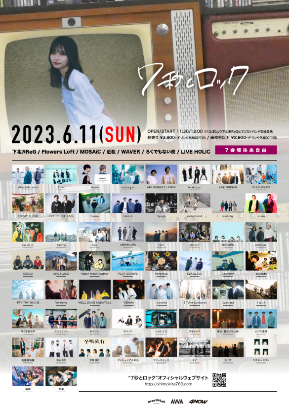 『7秒とロック』は、2019年と2021年に開催され、今年2023年で3回目を迎える歌ものサーキットイベント。下北 ReG、Flowers Loft、MOSAiC、近松、WAVER、ろくでもない夜、LIVE HOLICで行われ、各会場の往来は自由だ。