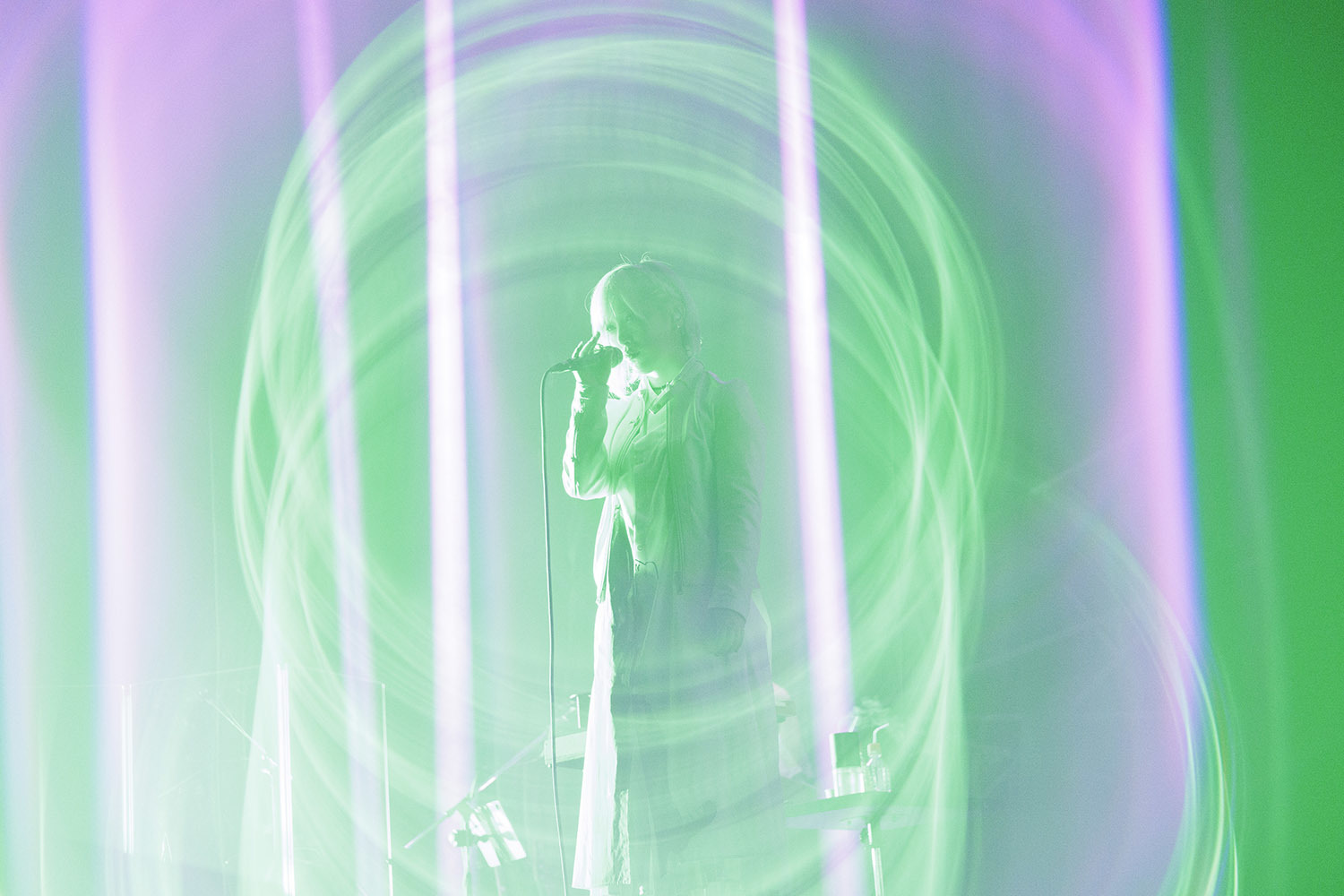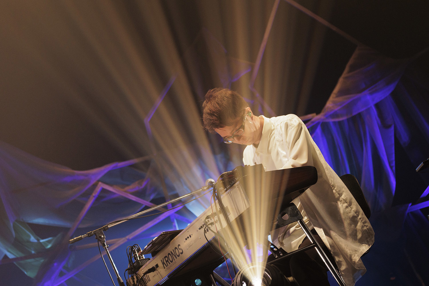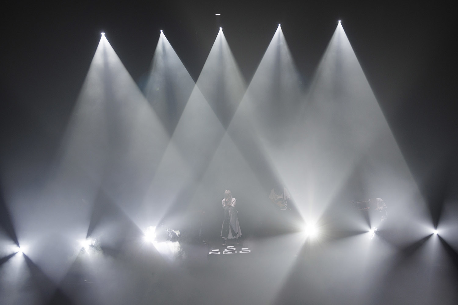 白のワンピースに白のレザージャケット、明るい髪色、全身を薄色に統一した彼女が立っていたのは、白く輝く一筋の光の上。足元に設置されていたのはLEDスクリーン、そこから真っ白な光が放たれている。そして彼女の登場に合わせてバンド隊によるサウンドが走り出す。そこに力強い歌声が合流し、本コンサートの幕が開いた。