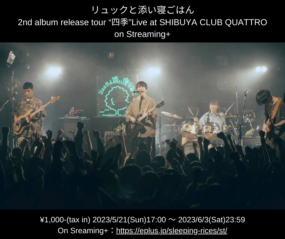 また、YouTubeでプレミア公開された、アルバム『四季』リリースツアーファイナル公演の映像が有料配信されることも決定。映像は、イープラスSreaming+にて、本日5月21日(日) 17時から約2週間にわたって視聴可能。1,000円の視聴券を購入することで、期間中は何度でも観ることができる。