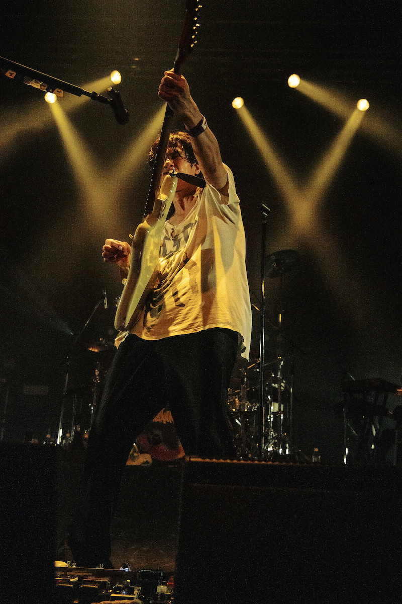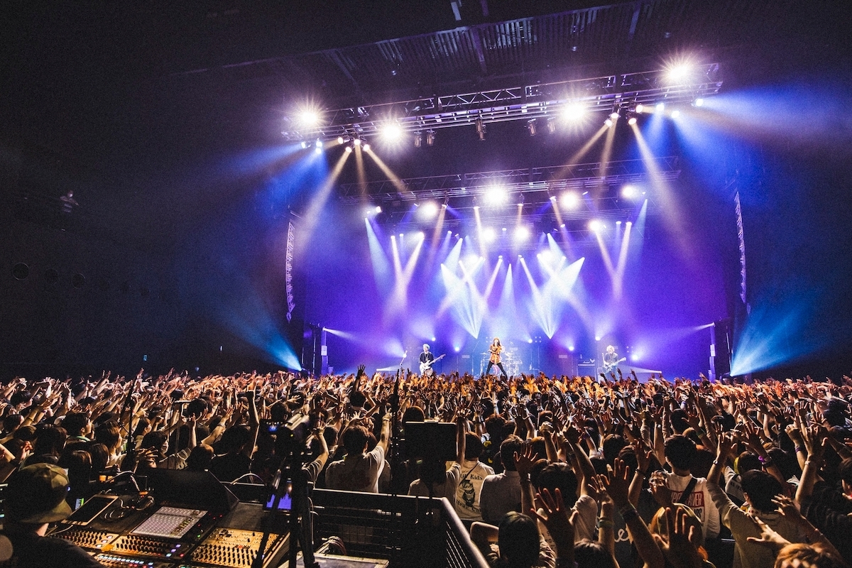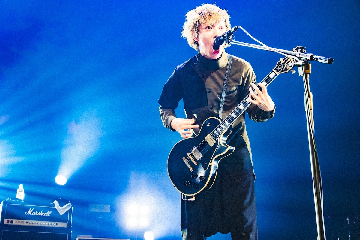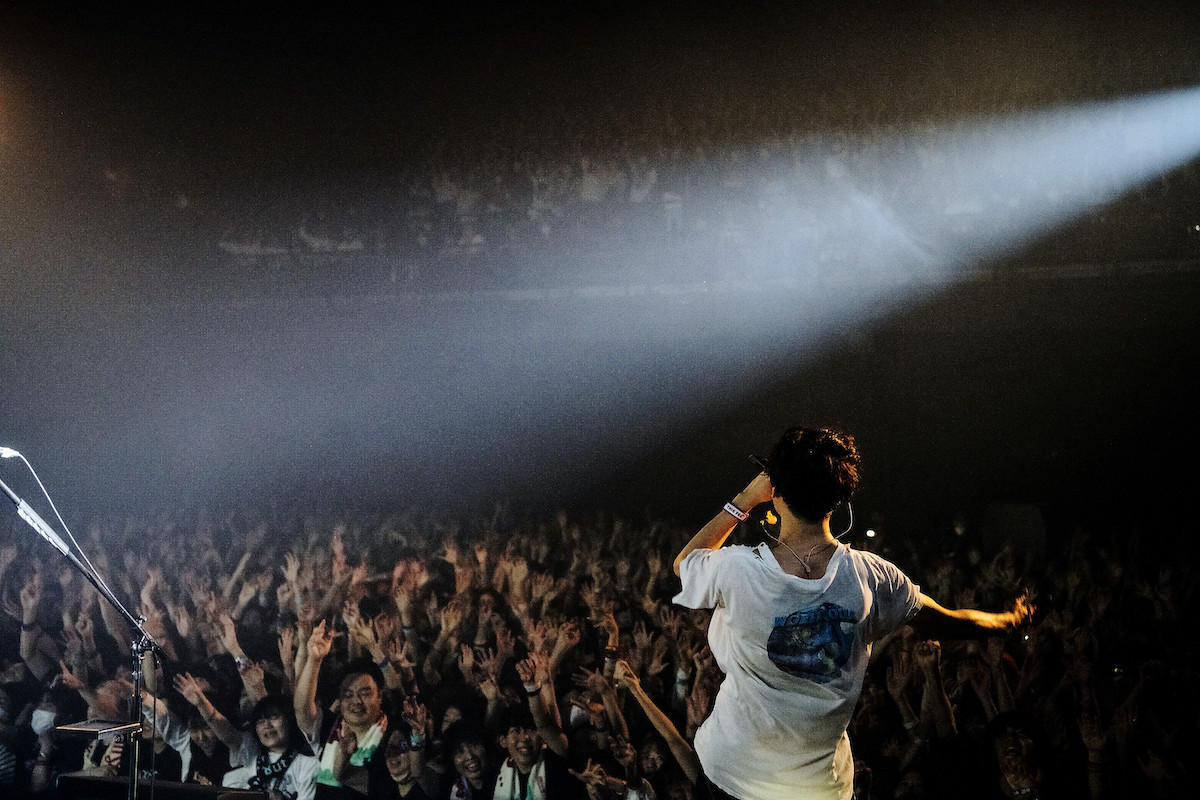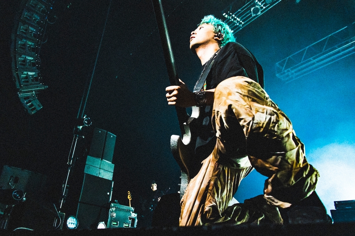 ツアー初日となるKT Zepp Yokohama公演1日目、ゲストとして登場したのはSUPER BEAVER。冒頭の「27」からエモーション全開の激演に熱く沸き返るフロアを、「始まってますけど? そんなもんっすか横浜!」と渋谷龍太(Vo)が絶唱とともに煽り立ててみせる。「突破口」では見渡す限りに観客の拳が力強く突き上がり、<威風堂々><正々堂々>のコール&レスポンスが響き渡る。「対バンの一番いいところは、メインアクトが、その一個前のアクトに影響されるってことです。俺たちがすごいのをやったら、先輩はそれを超えてこようとすると思うんで。俺たちと一緒に、最高の音楽を作りましょう!」という渋谷のMCに、拍手と歓声が広がる。