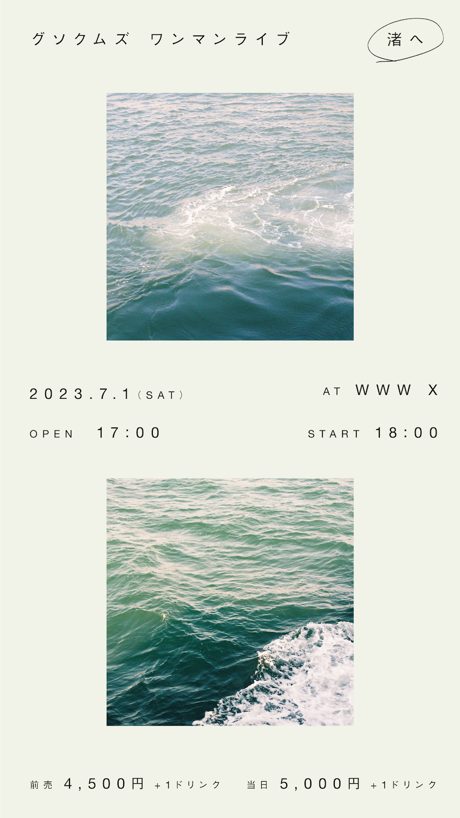 そんな違う個性の4人が集まったグソクムズの、過去最大規模のワンマンライブ"渚へ"では、バンドとして何段階か成長した姿を皆様にお見せできたら嬉しいと思っています。