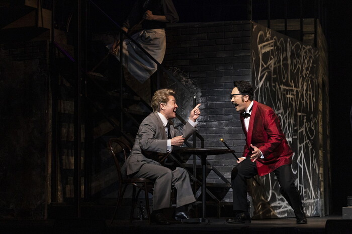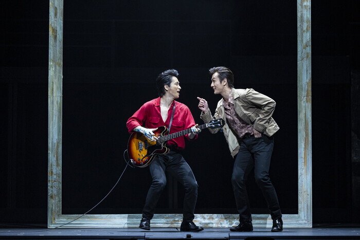 愛加が演じるのはスチュと恋に落ちるアストリッド。写真家でもある彼女の凛とした姿勢がスチュにどれほど影響を与えたか一目で理解させるオーラが放たれる。エルヴィス役の尾藤は1966 年のビートルズ初来日公演の際に前座を務め、彼らの生の演奏を体感した歌手でもある。その尾藤の、歌唱はもちろん存在そのものがこの物語にとって大きなものだ。