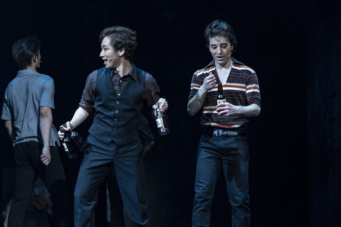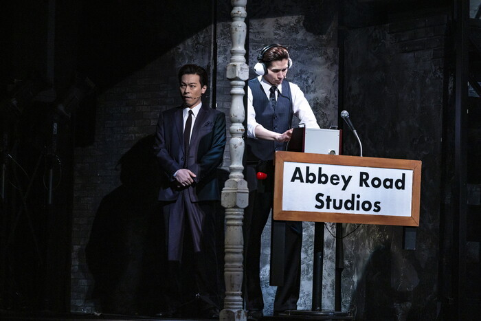 ビートルズの末っ子ジョージはギターが好きで人懐っこい人だったそうだが、辰巳のジョージはまさにそれ。そして目をこすりたくなるほど10代である。ミュージシャンでもあるJUONの芝居はポールへのリスペクトが垣間見え、それが不思議とポールの才能を予感させるものにもなっている。上口演じるピートは後半まで心情が見えてこない人物だが、その心の内が見えたとき、「感じていたのはこれか」と納得する芝居を丁寧に積み重ねる。