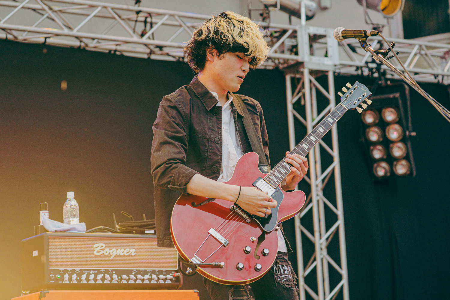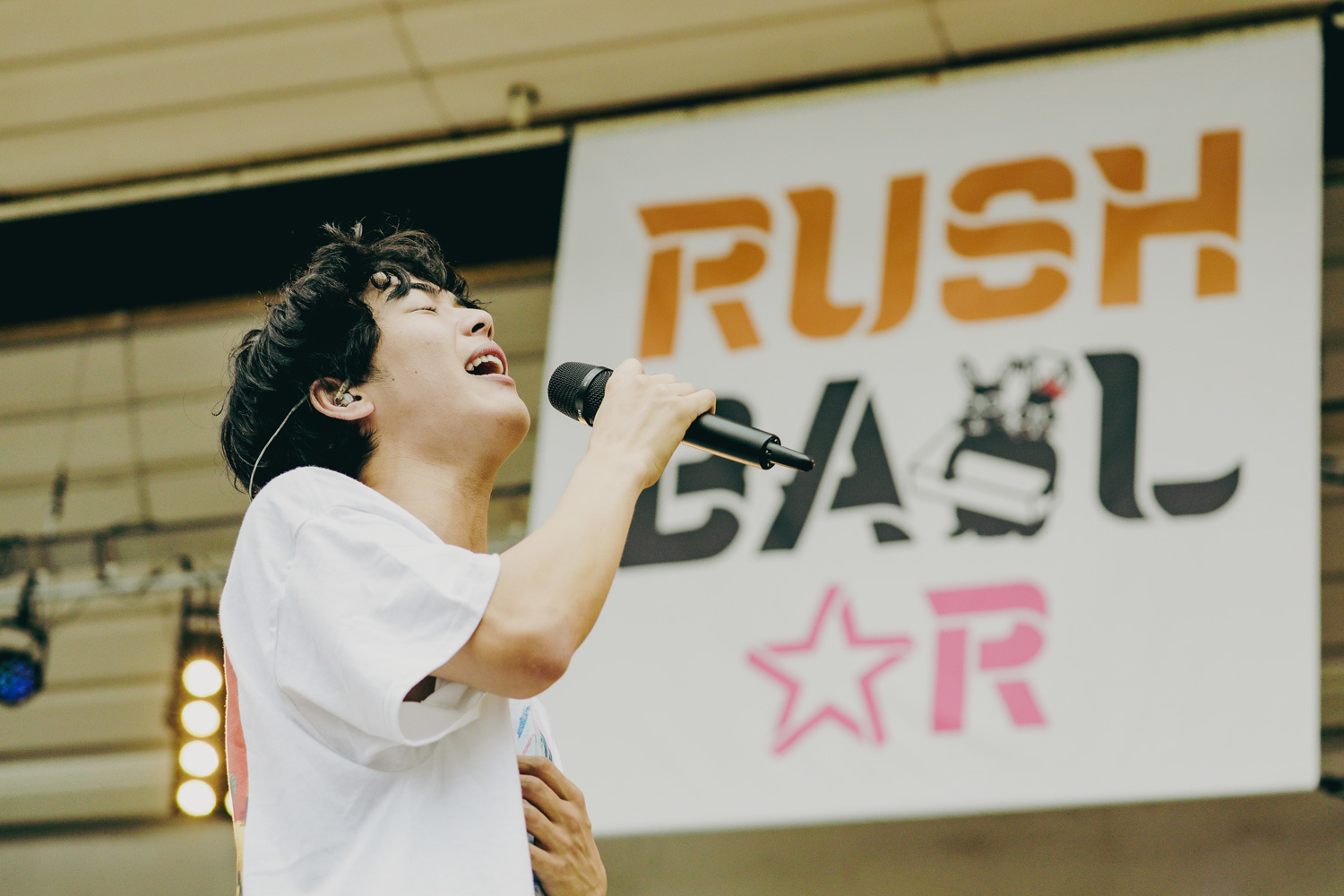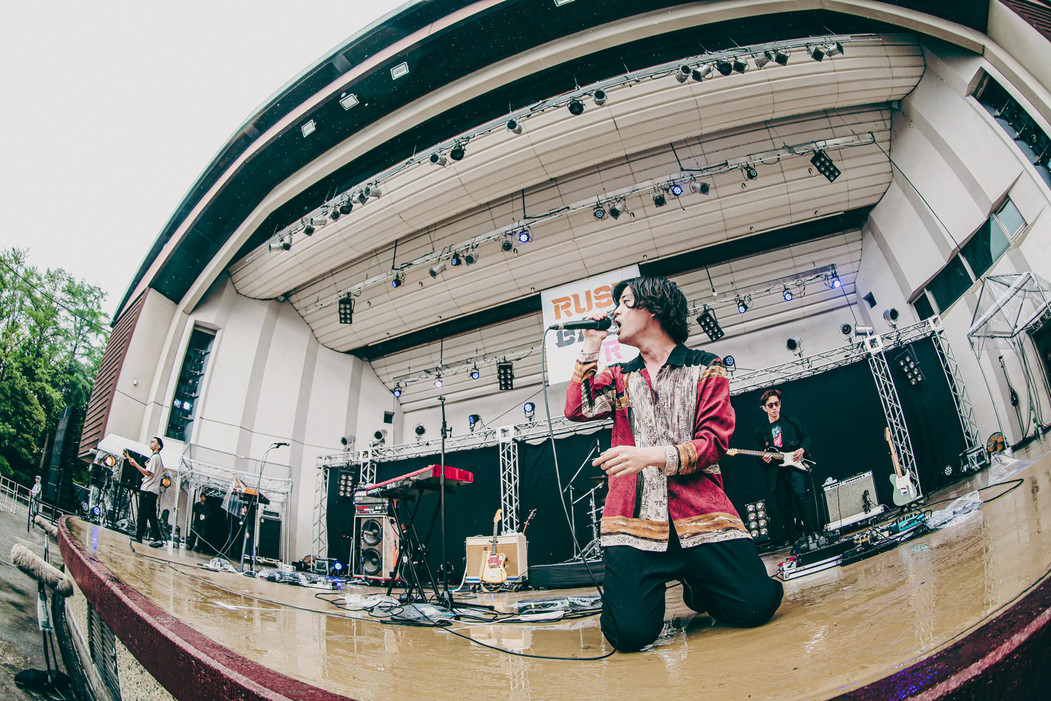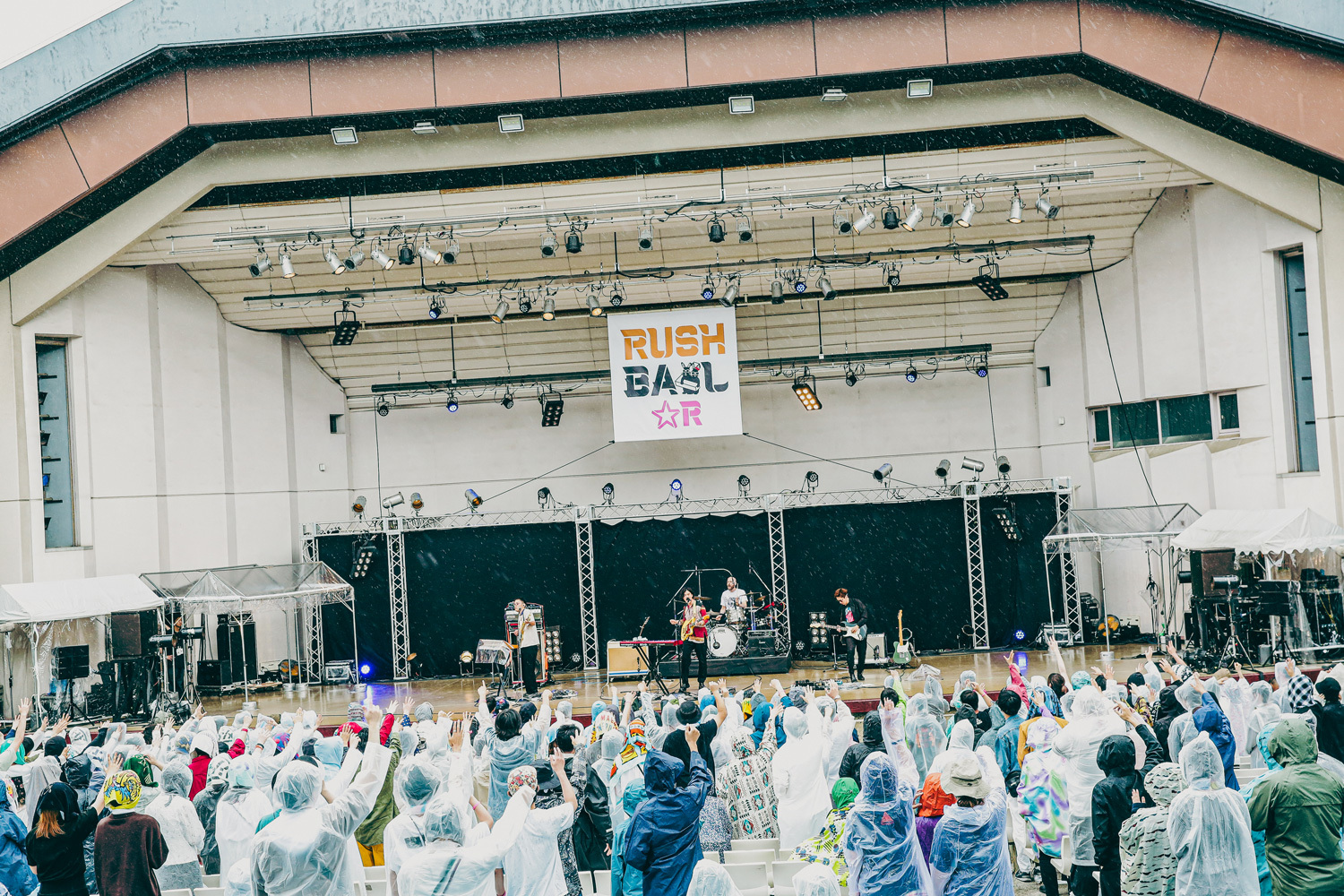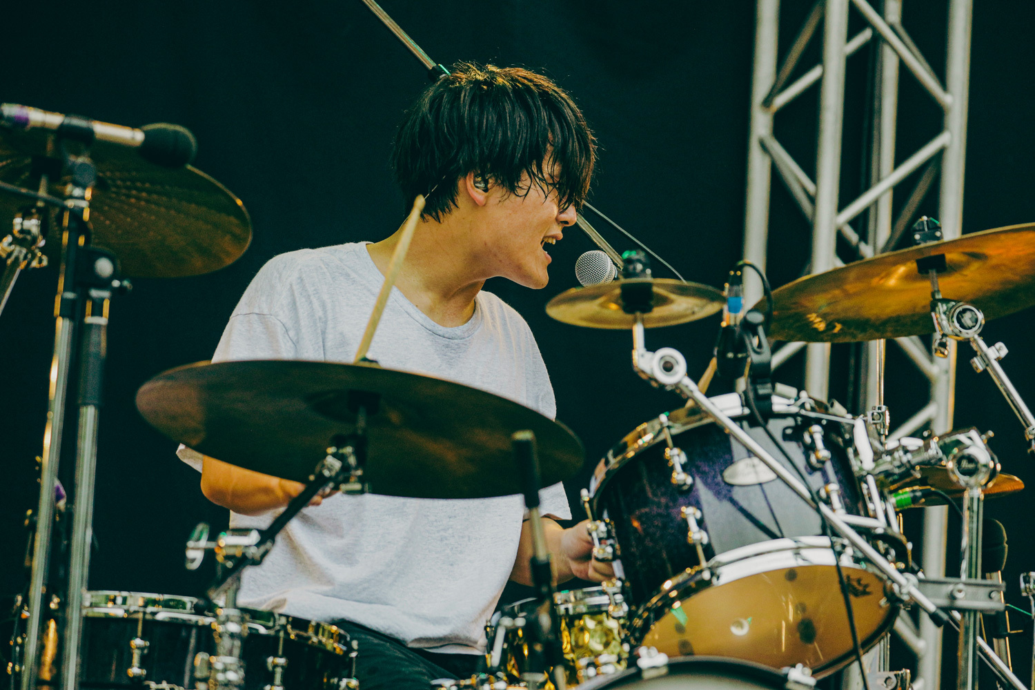 続けざまに「足りない二人」と「溢れる、溢れる」を疾走感たっぷりに聞かせる。「今日雨降るってわかってた人どのくらいいます?」と問うと8割強の手が上がり、「音楽が好きっていう一心で来てくれてありがとう!」と感謝を述べて「でっかいイベント出てるとさ、色んな大人の方がいるのね。ほんとに色んな人たちが俺たちを輝かせてくれるわけですね。俺たちはそういう背景を見てるからこそ、そして2回目だからこそ、責任持って歌わなきゃなと。あなたを楽しませるために全力でやんなきゃなと思いました。これからもカッコ良くい続けます」と「FUSION」を決意を込めるように響かせる。そして熱を帯びつつ爽やかに「少年少女」を披露して、最後の「愛すべきミュージック」へ。グッドメロディと「音楽が好き」という共通言語が自然と体を踊らせる。彼らの実直さと『RUSH BALL』への愛がしっかり伝わった素敵なライブだった。