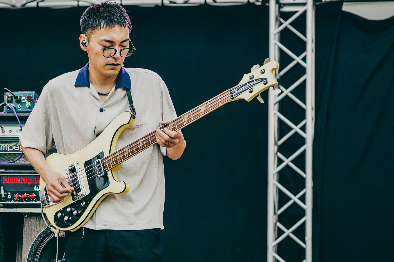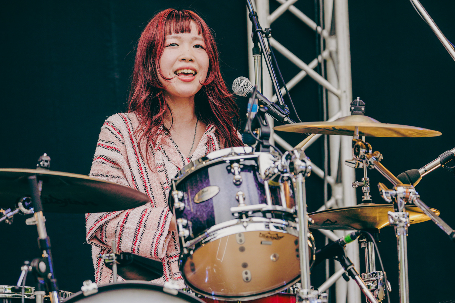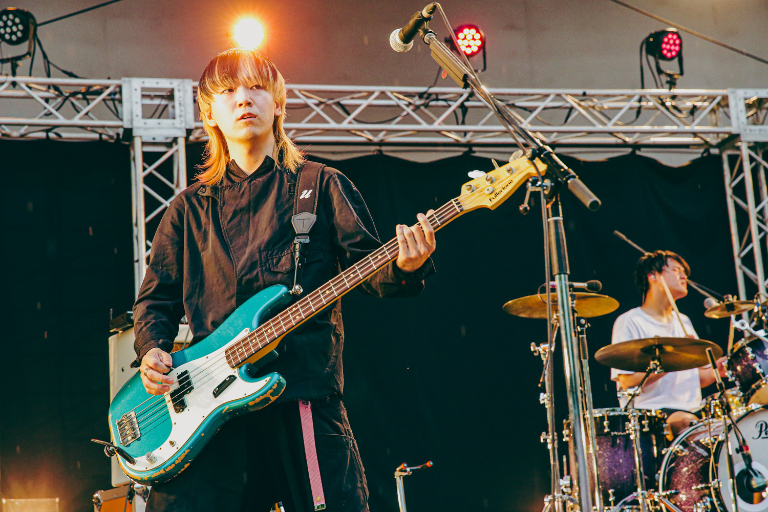 Honda FIT e:HEVのCMソングになった「Leviathan」では、最高の疾走感でスケールの大きな景色を浮かび上がらせる。続いて「雨止んできたね! 夏の曲を」と軽快な「Lake」を思い切り響かせて、Reiのカリスマ性を見事に知らしめる。そして新曲「Clockwise」を披露。メロディ展開とドラムの包容感が気持ち良く、体が勝手に動き出す。「みんな雨大丈夫?」とYoheyがオーディエンスを気遣う場面もありつつ、最後の「Bonfire」へ。会場をクラップでひとつにし、晴れやかな空気で満たしてフィニッシュした。ライブ開始時に雨が降り、終盤に上がるという自然の演出も味方につけて、最高のサウンドスケープを描き出した。