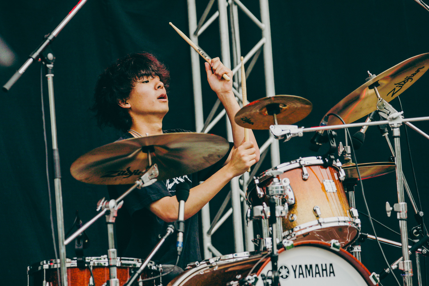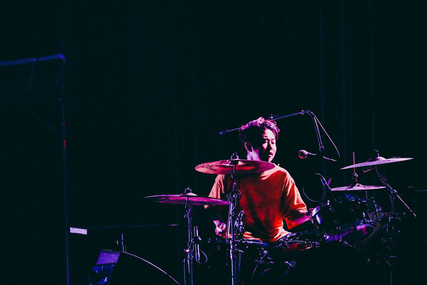 さかしたと長谷川が1対1で向き合って繰り出す音がとにかく痺れるのだ。グッと長谷川に近づき、煽るさかした。と、ふいに水の入ったペットボトルを手にしてドラムセットに乗ったと思えば、長谷川の頭から水をぶっかけた! そして残った水を自分にもかける! この様子にオーディエンスは熱狂! 客席だけずぶ濡れなのはフェアじゃないと思ったのだろうか。持ち時間ギリギリいっぱいまで続くセッションを経て再び楽曲に戻り、最高潮の盛り上がりでステージを終えた。キャリア12年目を迎えた彼らの存在感と実力の高さを見せつけた、堂々たる35分だった。