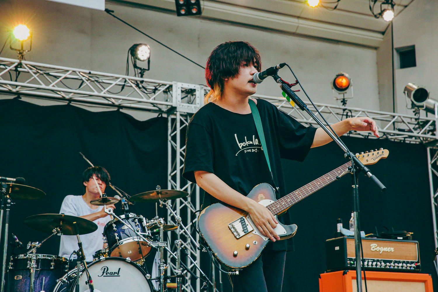 暗く落ち込んだ空が雨を降らす。本格的に雨天となった。仲川慎之介(Vo.Gt)が「大変な中見てくださってマジで嬉しいっすわ。ありがとうございます。みんなが大変な中言うのもあれなんですけど、俺、雨の野音ちょっと憧れてたんすよ。嬉しいっすわ」と述べて「stars」を歌い始める。声を発しただけで空気を揺るがす力のある仲川のボーカル。生々しい歌声と歪んだバンドサウンドから伝わるエモーション。