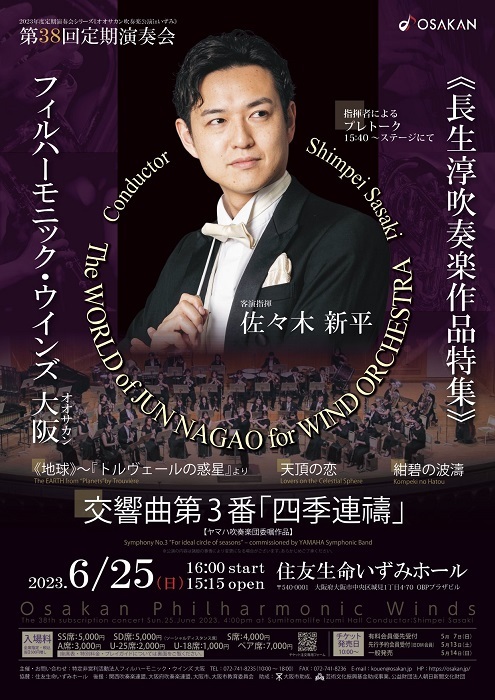 2023年6月25日(日)住友生命いずみホールにて、フィルハーモニック・ウインズ 大阪(オオサカン)第38回定期演奏会が開催される。