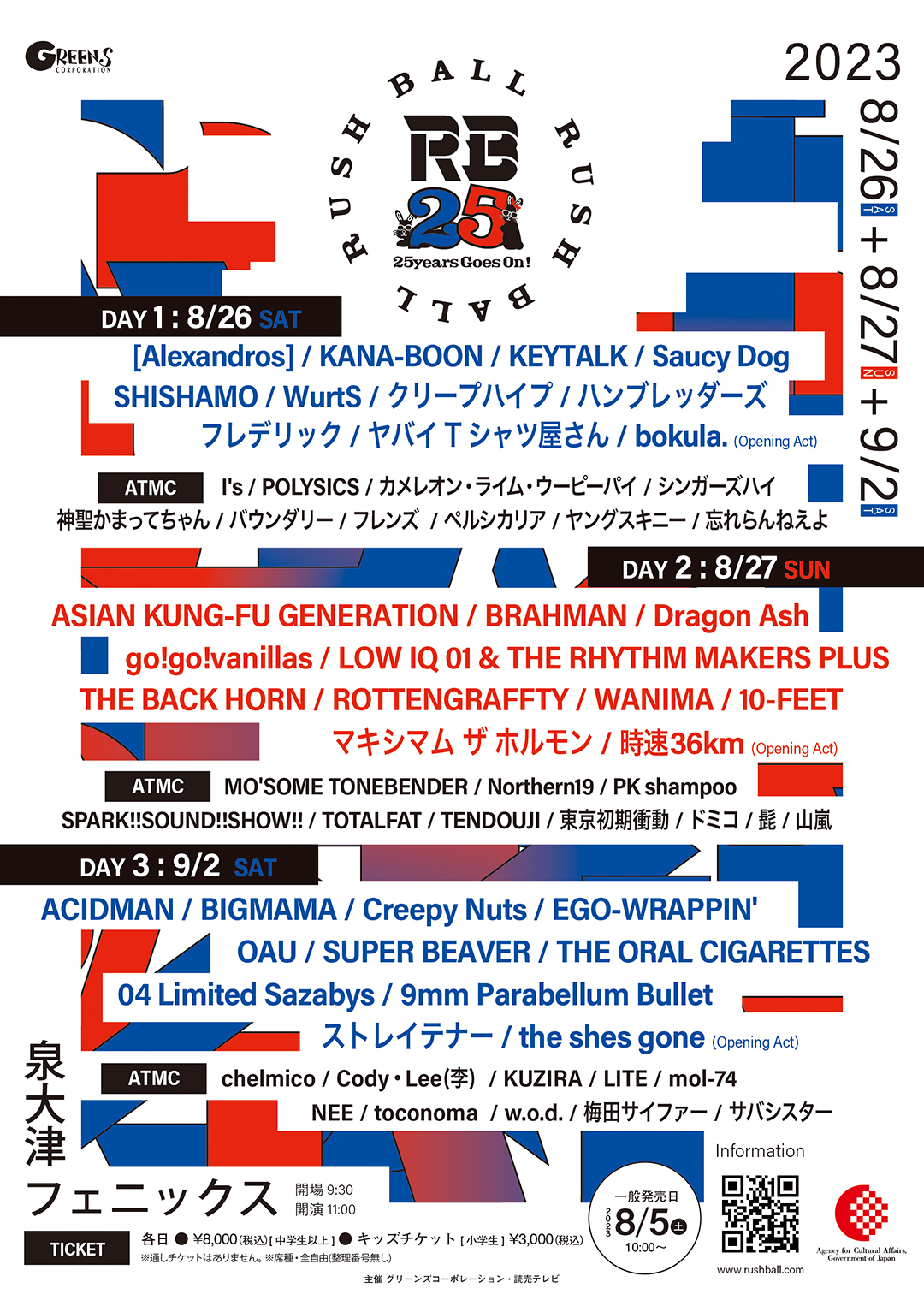 2023年8月26日(土)、27日(日)、9月2日(土)の3日間、大阪・泉大津フェニックスにて開催される野外ライブイベント『RUSH BALL 2023 25years Goes On!』で、ATMCに出演する30組が解禁。これにて全出演者が発表された。