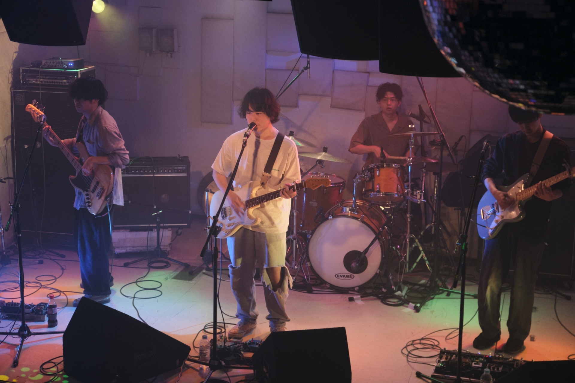 面白いバンドに出会っちゃったな! という気持ちと、だから、ライブハウスは面白い! という気持ちで、久々に胸の躍る夜だった。関西を拠点に活動する、4人組ニュースクールポップバンド・ステエションズが、2ndアルバム『ST-2』をリリース。そのリリースライブが、下北沢MOSAiCにて行われた。出演はアロワナレコード、Lym、そしてステエションズ。2019年結成、東京でのライブ本数もまだ少なく、知る人ぞ知るの存在ではあるバンドだが。会場にはライブハウスに高くアンテナを張った、多数のオーディエンスが集結。ポップで型破りなステエションズの音楽世界に魅了された。