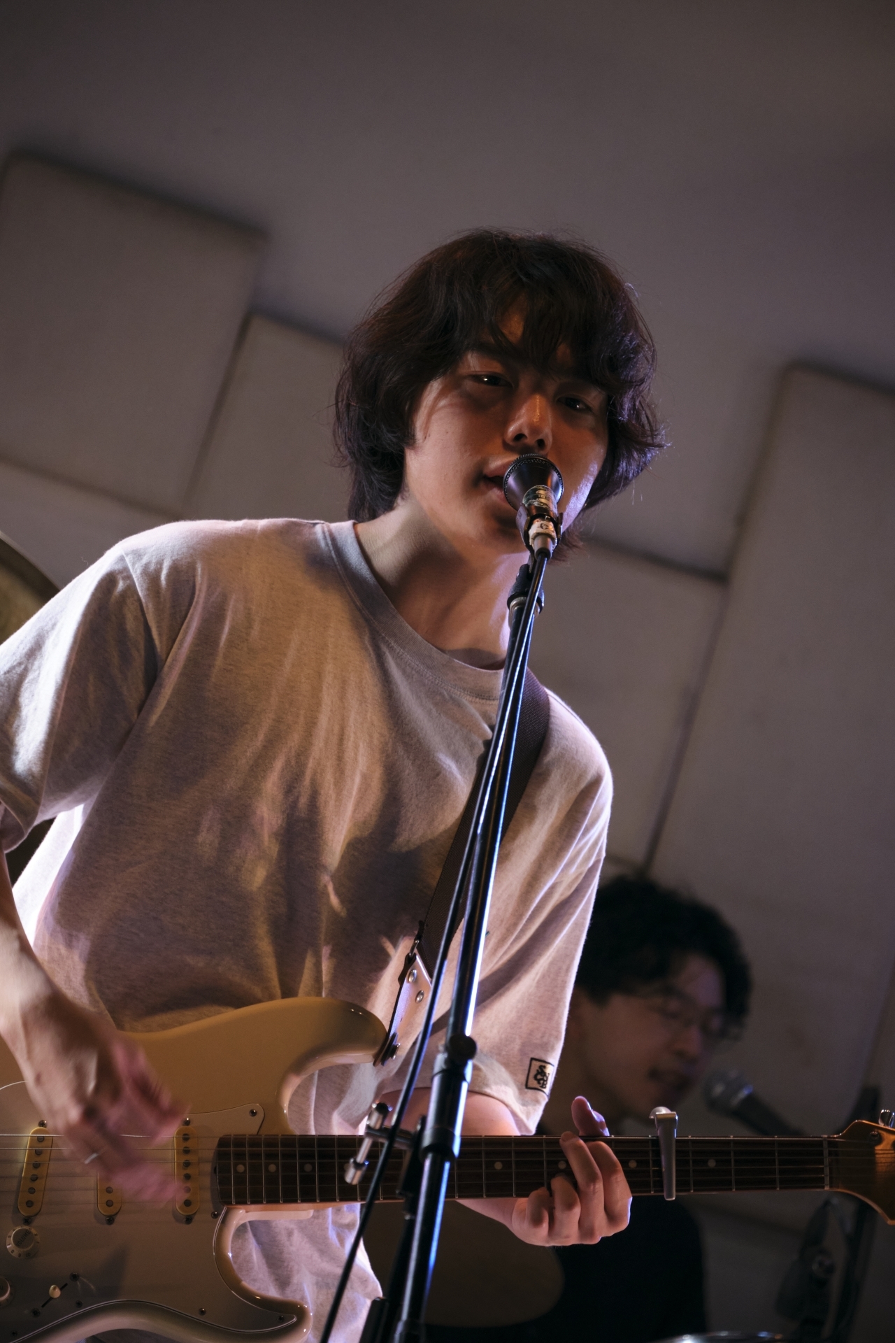 「暑くなってきましたね」のMCから、じわっとした夏の夜を思わせる「夏めく夜に」を披露すると、ラストはリバーブの効いたボーカルでディープな世界へと誘い、激しく感情的に展開する「大都会」でフィニッシュ。短い時間ながら、楽曲世界に気持ちよく浸らせてくれた。