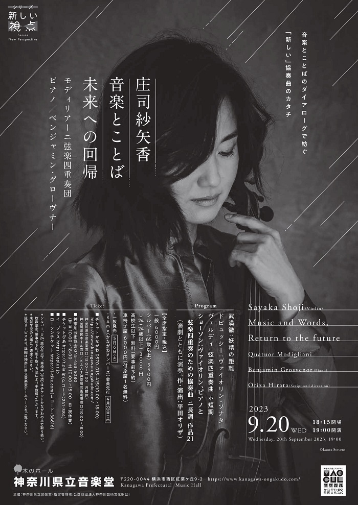 2023年9月20日(水)神奈川県立音楽堂にて、『シリーズ「新しい視点」 庄司紗矢香 音楽とことば 未来への回帰』が開催される。