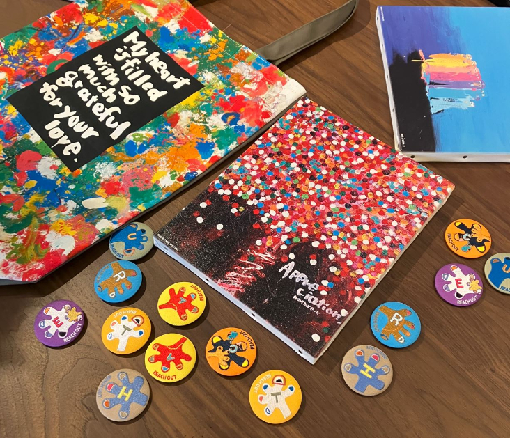 「手を差し伸べる、人々と触れ合う」という意味を持つREACH OUTは、マジックから木材まで幅広い素材を使い、様々な色や形の手をモチーフとして描いている。このシリーズには、仲間と友人との繋がりや助け合いというメッセージが込められている。