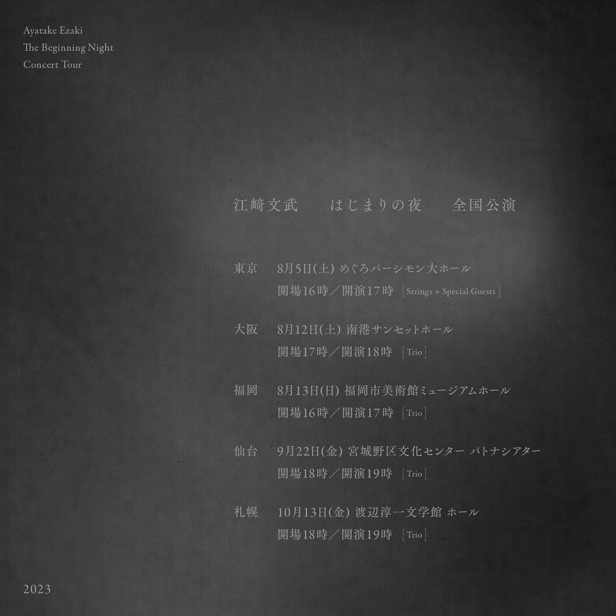 また、本日の配信に合わせて、『はじまりの夜』ツアーもアナウンスされた。8月5 日(土)東京・めぐろパーシモン大ホールでの公演を皮切りに、大阪、福岡、札幌、仙台を回る。チケット情報、サポートメンバー、ゲストアーティスト詳細は近日発表予定とのこと。