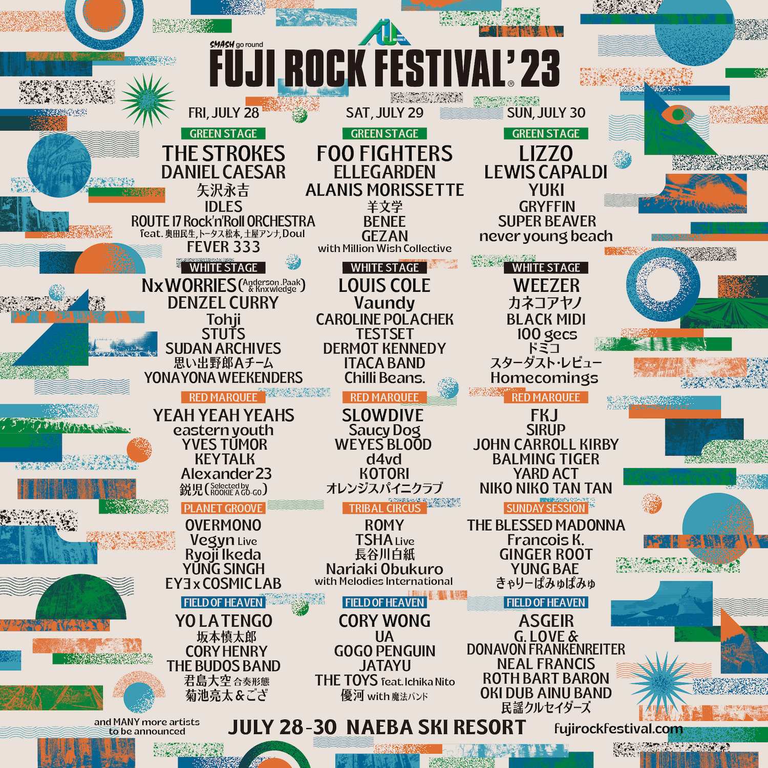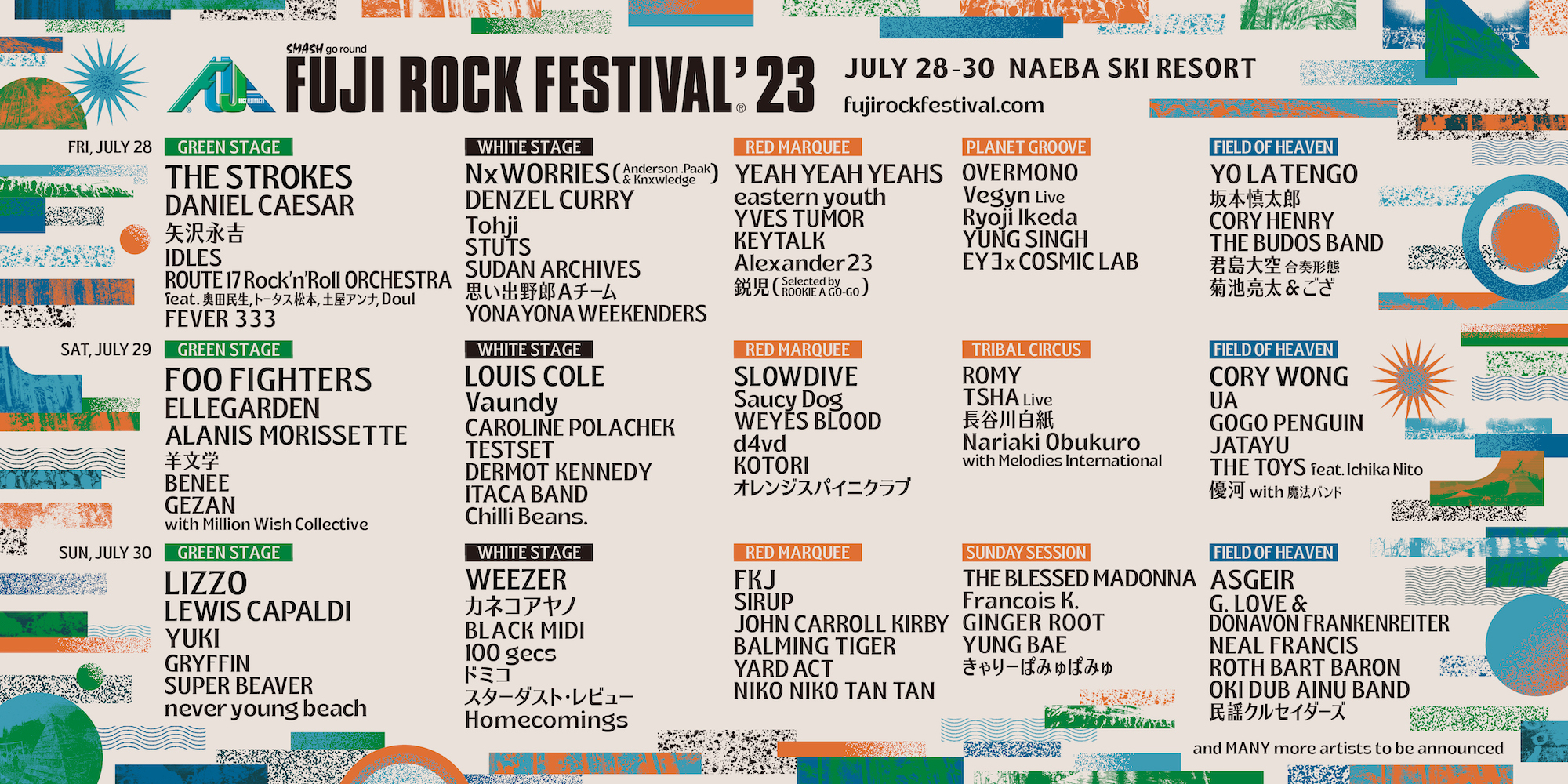 7月28・29・30日に新潟県湯沢町苗場スキー場にて開催される『FUJI ROCK FESTIVAL'23』(以下、フジロック)のステージ別ならびに第6弾ラインナップが発表された。