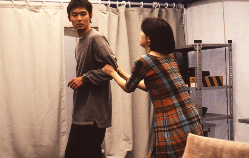 一作目を映画館でみた時、音に拘った積もりだったのに全く思うように行かなくてガッカリしまし た。で、次ぎやるならライブのシステムを会場に持ちこんでやろうとあの形になりました。 ちょうど映画の上映システムが変わって行こうとする境目でした。なかなかの冒険でした。