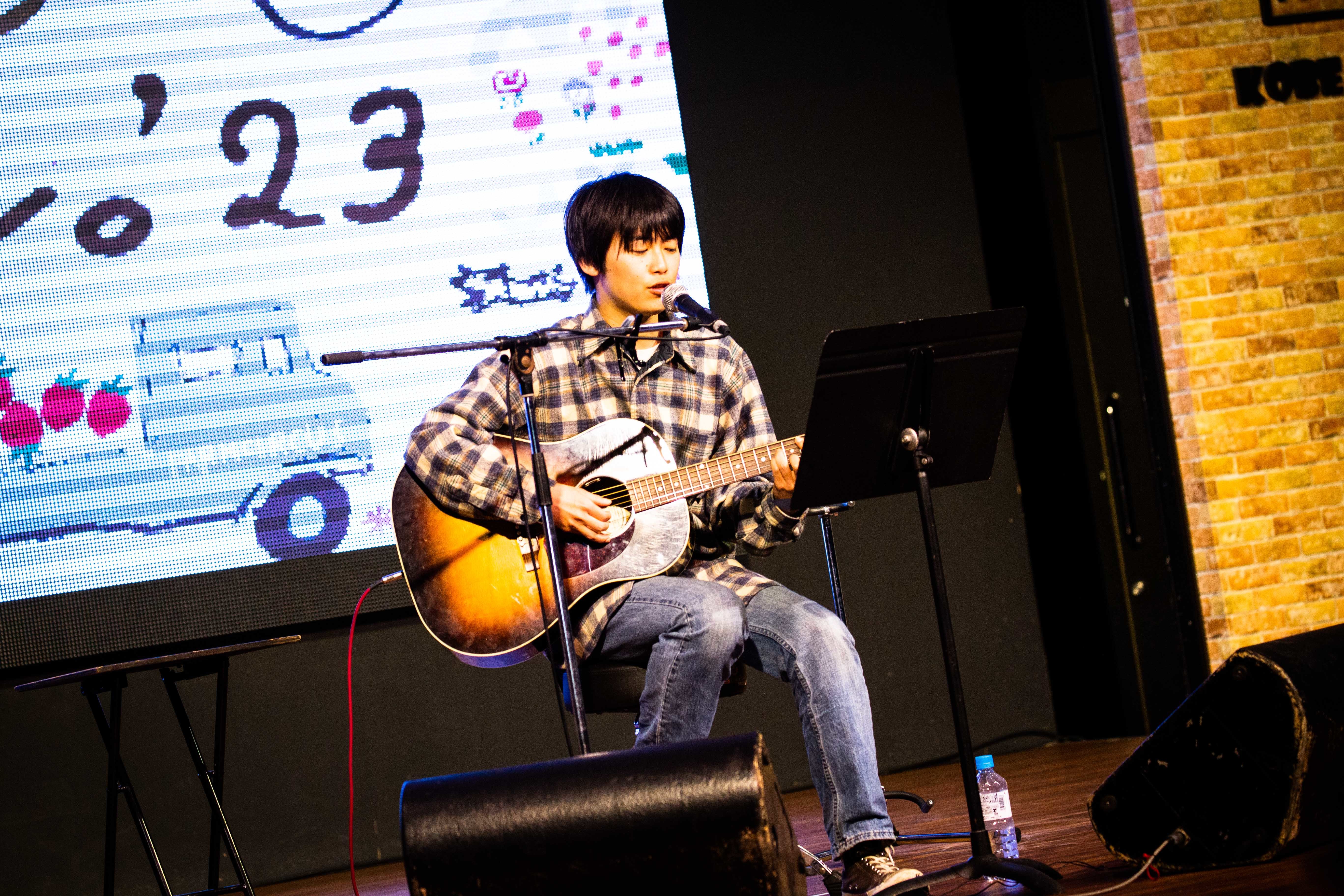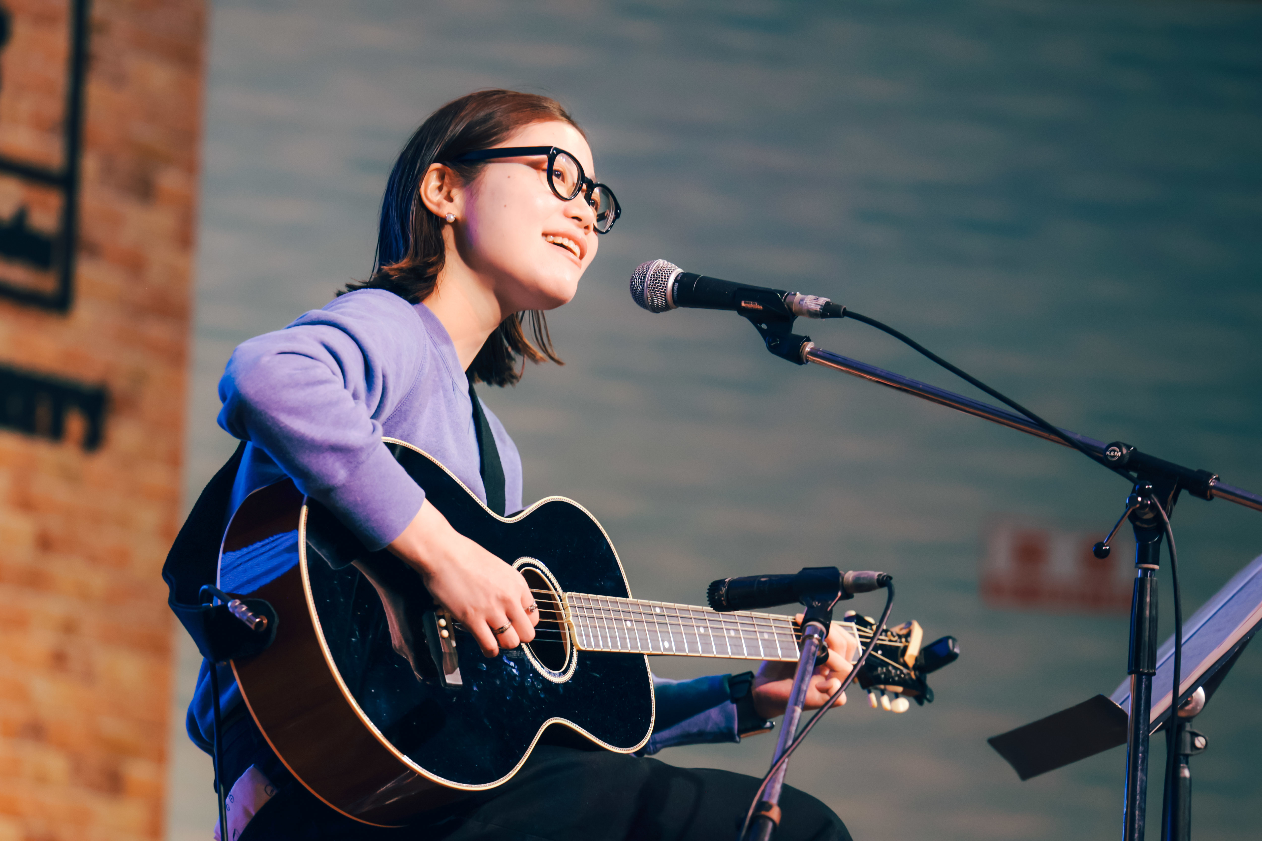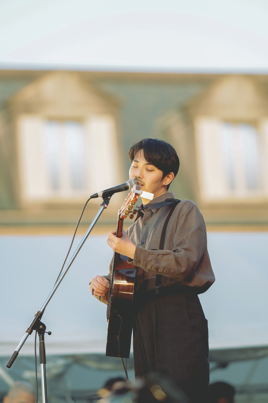 唯一の屋内ステージである、常設劇場「神戸モンキーズ劇場」を利用したMONKEY STAGEでもさまざまなライブが。ダンス・演劇・舞台・アパレルブランドと幅広い活動を行うクリエイター集団の四畳半帝国は、華麗なダンスパフォーマンスを披露。シンガーソングライターのやまもとはるとは、朴訥とした中に力強さを感じさせる歌声と良質なメロディーの弾き語りで会場を魅了した。FRUITS STAGEでThe Songbardsの出番を終えた上野皓平(Vo.Gt)はソロの弾き語りで登場。神戸育ちの彼は「神戸モンキーズが本当に楽しみ」と微笑み、ゆったりと歌声を響かせる。The Songbardsの楽曲もバンドセットとは違う魅力で爽やかに歌い上げた。