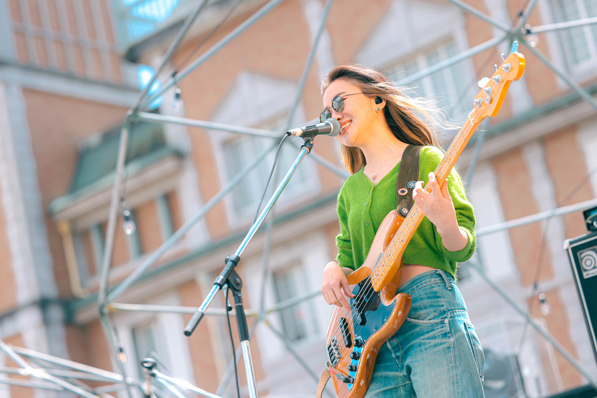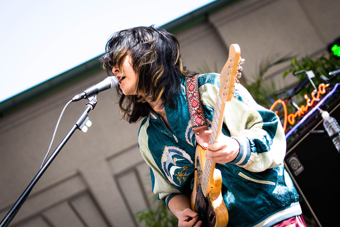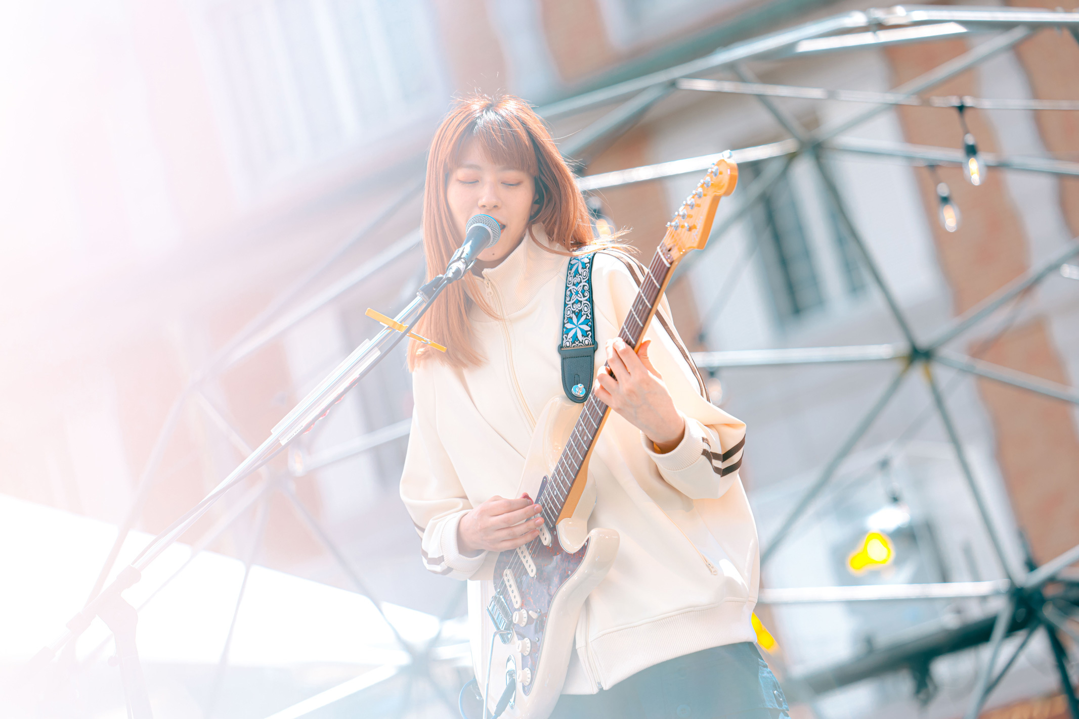 唯一の屋内ステージである、常設劇場「神戸モンキーズ劇場」を利用したMONKEY STAGEでもさまざまなライブが。ダンス・演劇・舞台・アパレルブランドと幅広い活動を行うクリエイター集団の四畳半帝国は、華麗なダンスパフォーマンスを披露。シンガーソングライターのやまもとはるとは、朴訥とした中に力強さを感じさせる歌声と良質なメロディーの弾き語りで会場を魅了した。FRUITS STAGEでThe Songbardsの出番を終えた上野皓平(Vo.Gt)はソロの弾き語りで登場。神戸育ちの彼は「神戸モンキーズが本当に楽しみ」と微笑み、ゆったりと歌声を響かせる。The Songbardsの楽曲もバンドセットとは違う魅力で爽やかに歌い上げた。